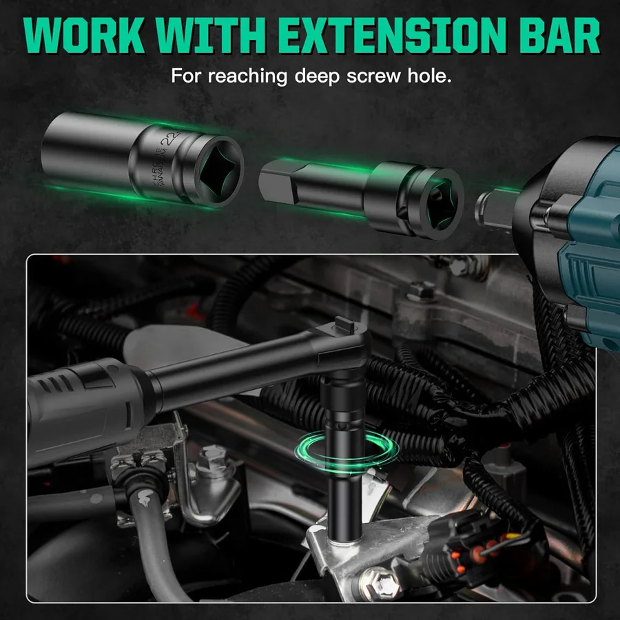 High strength CR-V sockets can withstand more torque from impact tools. Black oxide finish offers maximum protection from rust and corrosion, ensure long service time.