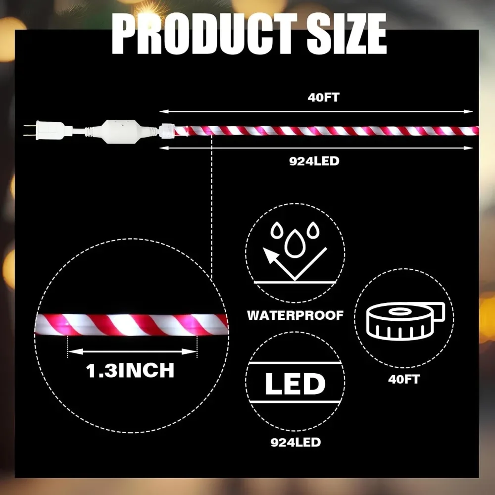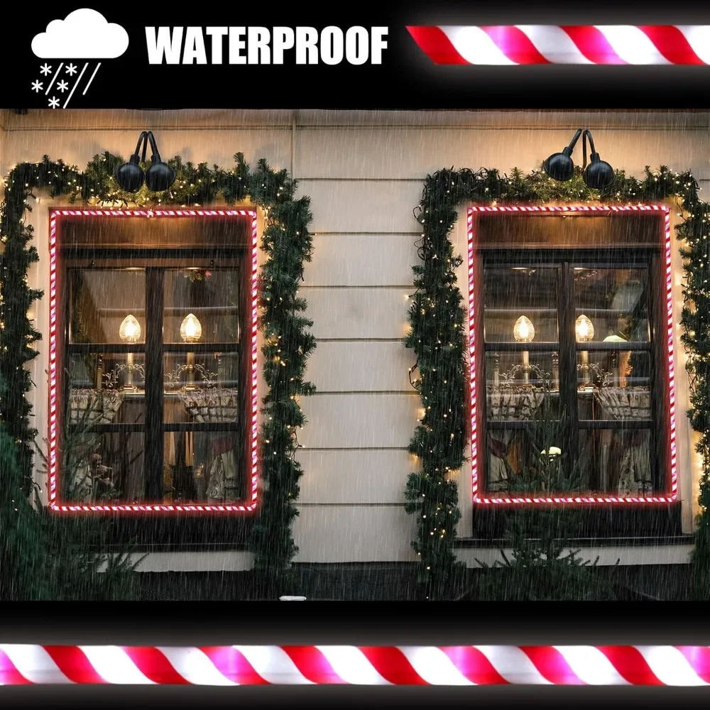 Generous Illumination: enveloping your space in festive charm with about 100 ft length of candy cane Christmas rope light, backed by 924 LED bulbs; The lively red white and green stripes bring the joyous mood of Christmas to life