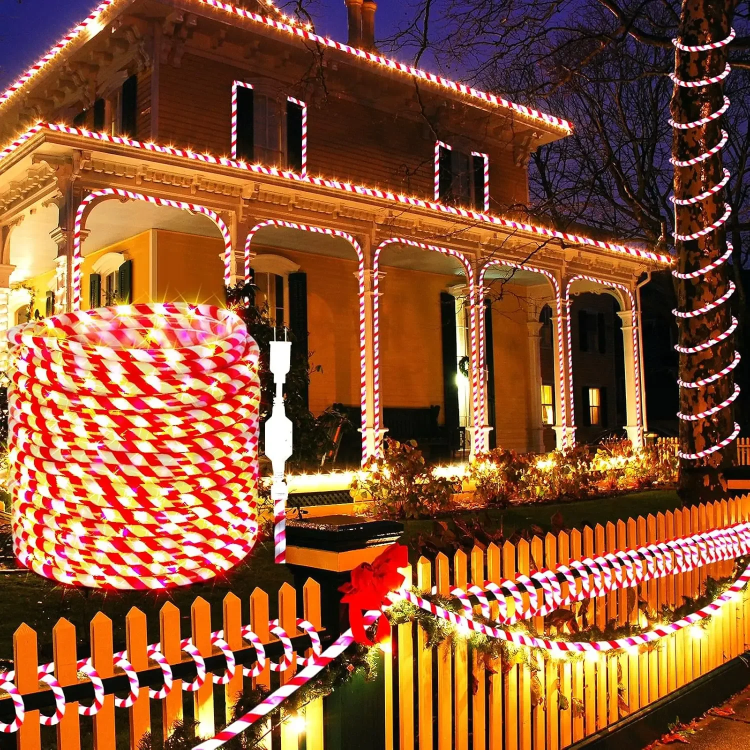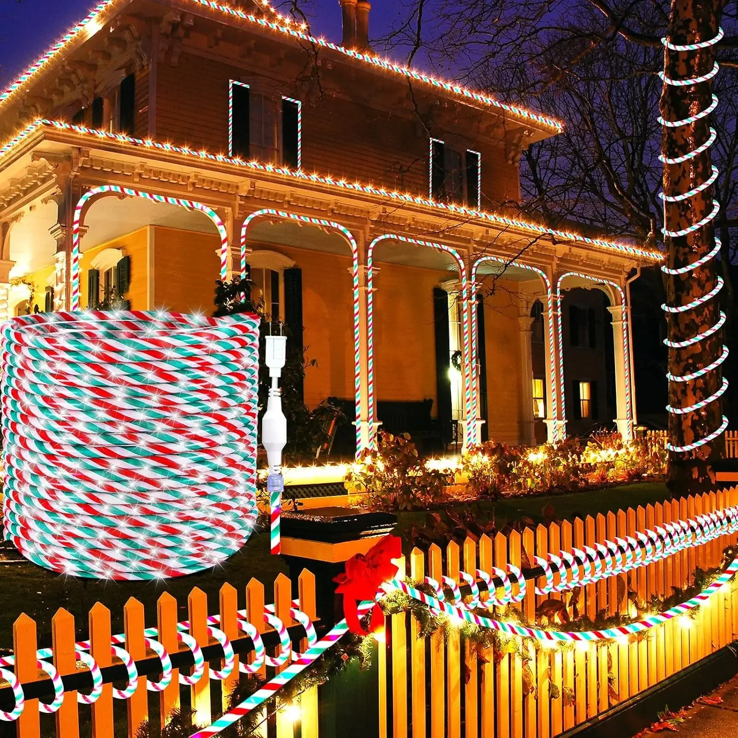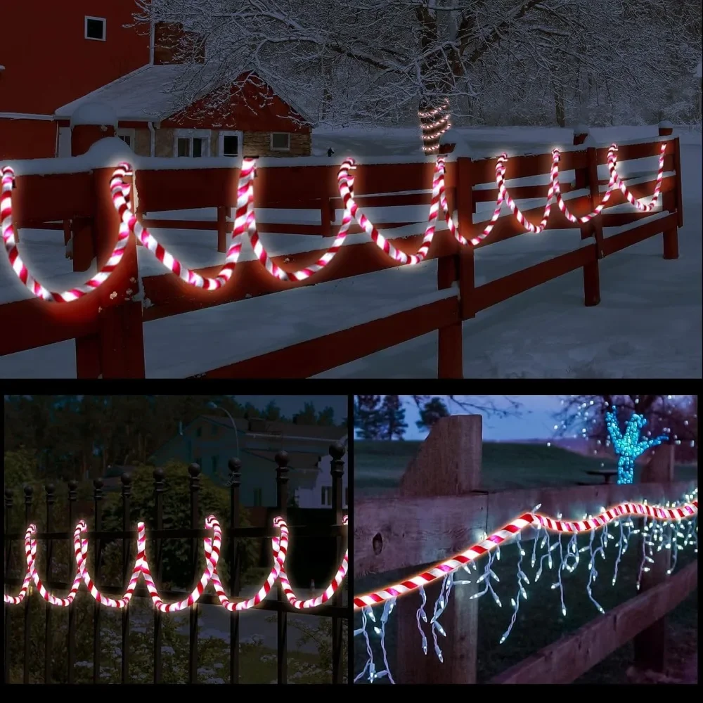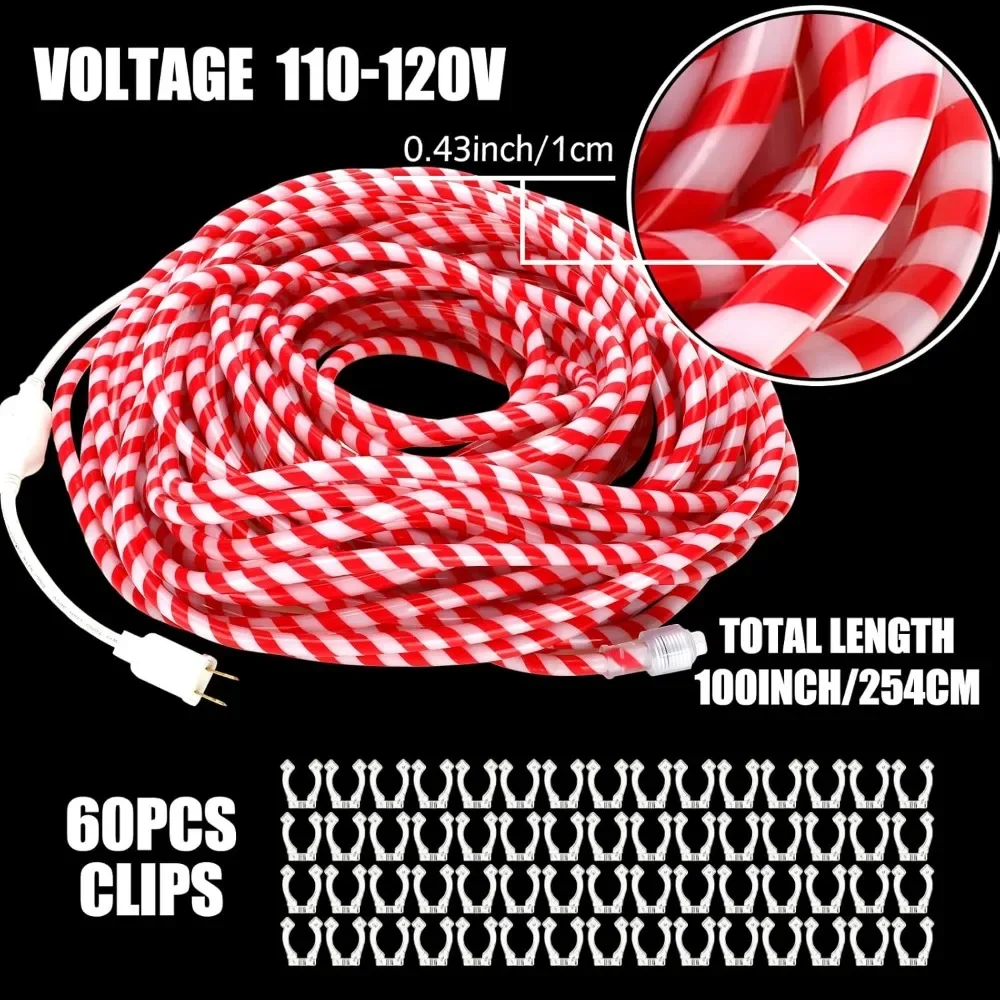 Designed for Convenience: these candy cane rope lights are flexible and come with 60 clips for easy secure connections, ensuring easy installation; Whether wrapped around trees or lined along a byway, these lights will easily get into diverse nooks and crannies