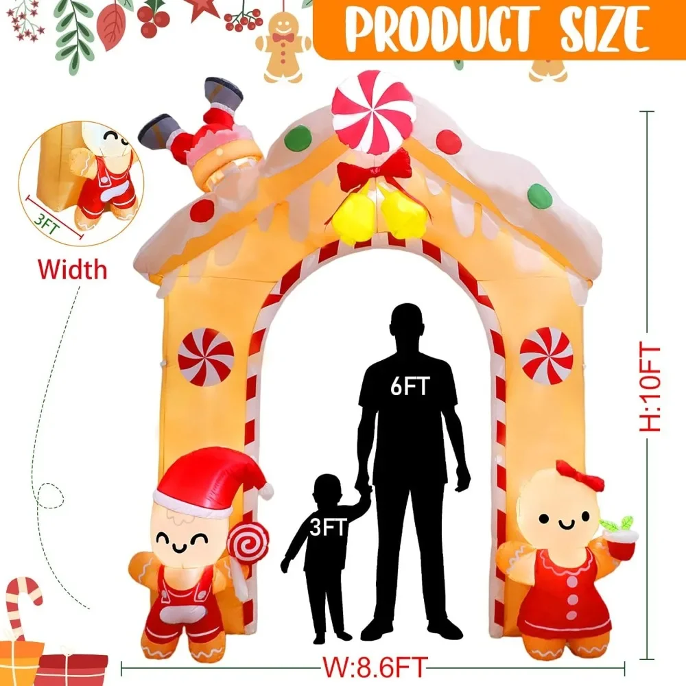 - Festive Outdoor Delight: Standing tall at 10 feet, this Christmas outdoor inflatable will captivate all who pass by. The UL-approved plug with a 118-inch long power cord allows for easy access to power sources. Position a gingerbread inflatable in your front yard, garden, or patio to create a stunning display of holiday joy.