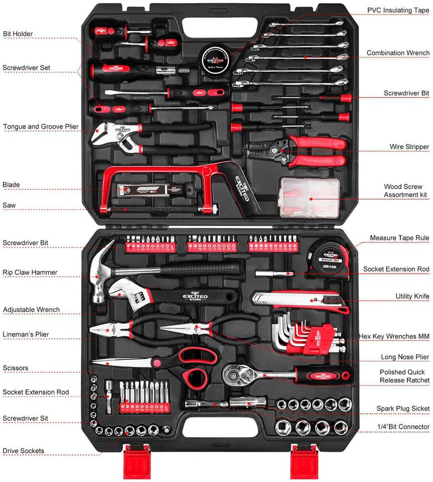 - WIDELY USED- Multi-functional tool kit contains the most necessary tools for most small repairs and basic projects around the house. Perfect for home DIY projects including furniture assembling lighting woodwork plumbing repair and many more. Handyman repairmen construction workers mechanics body shops etc. also great tool set to have at home garage and the workshop.