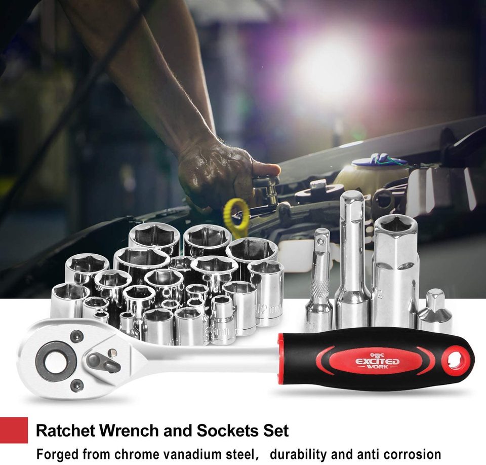 - 1pc 3/8″ Quick Release Ratchet; 1pc 3/8″ Socket Extension Rod; 1pc 1/4″ Socket Extension Rod