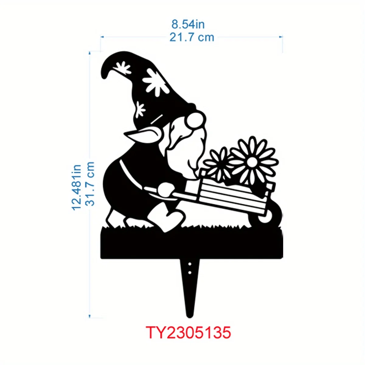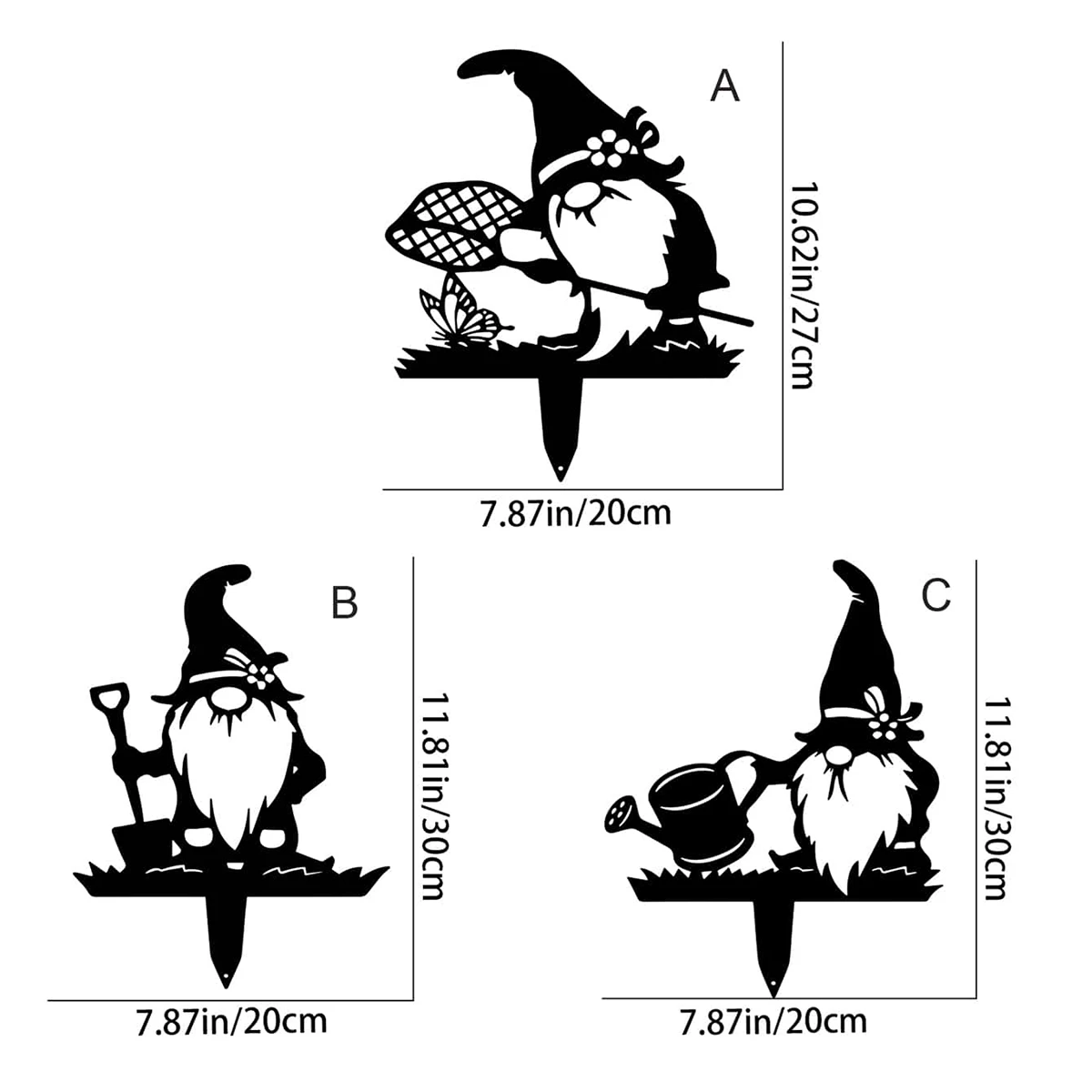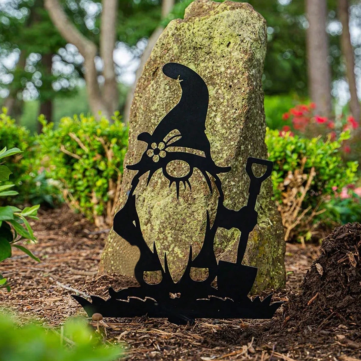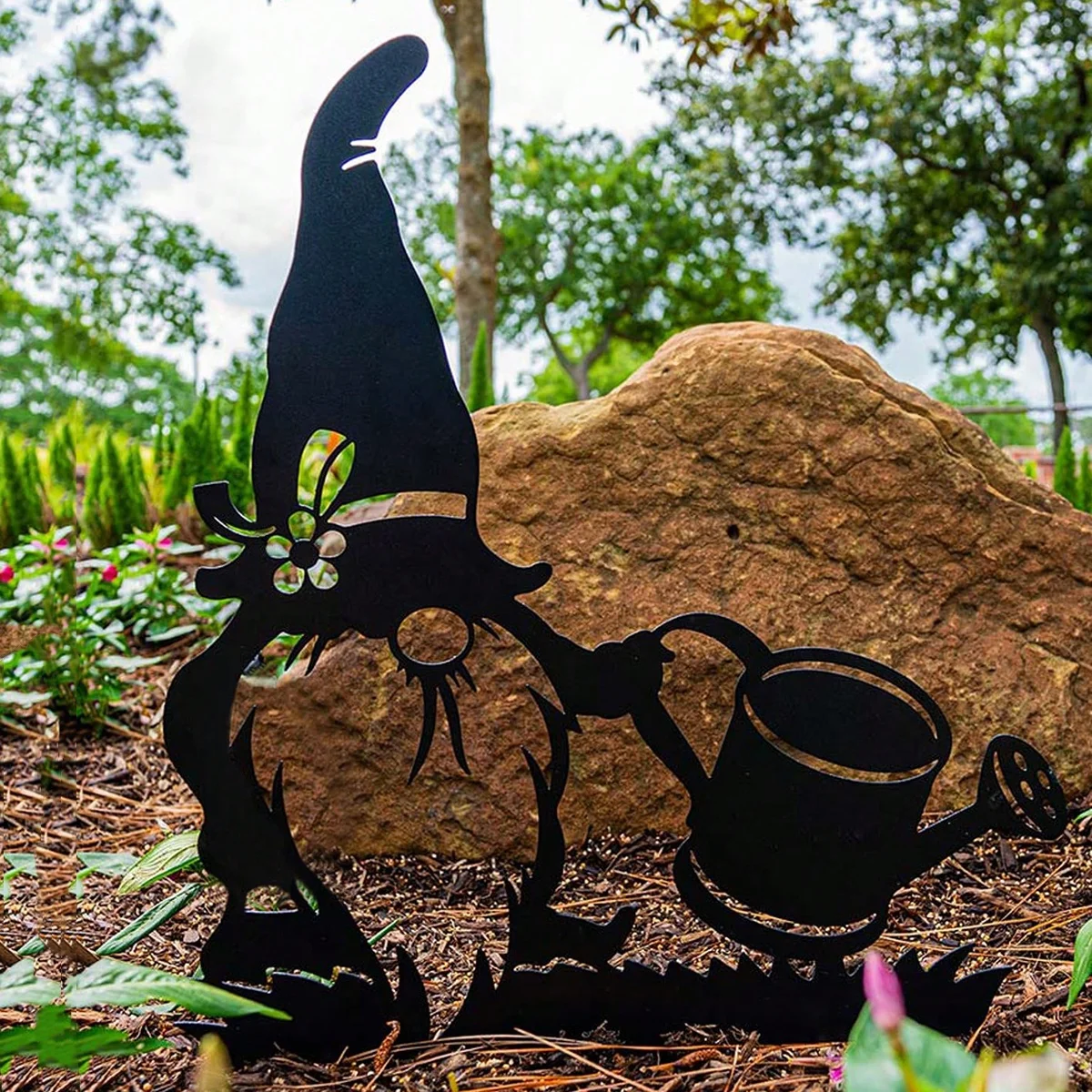 1PC Metal Black gnome Garden Stakes Decoration Cute gnome Garden Decorative Outdoor Statues For gnome Lovers Yard Garden
