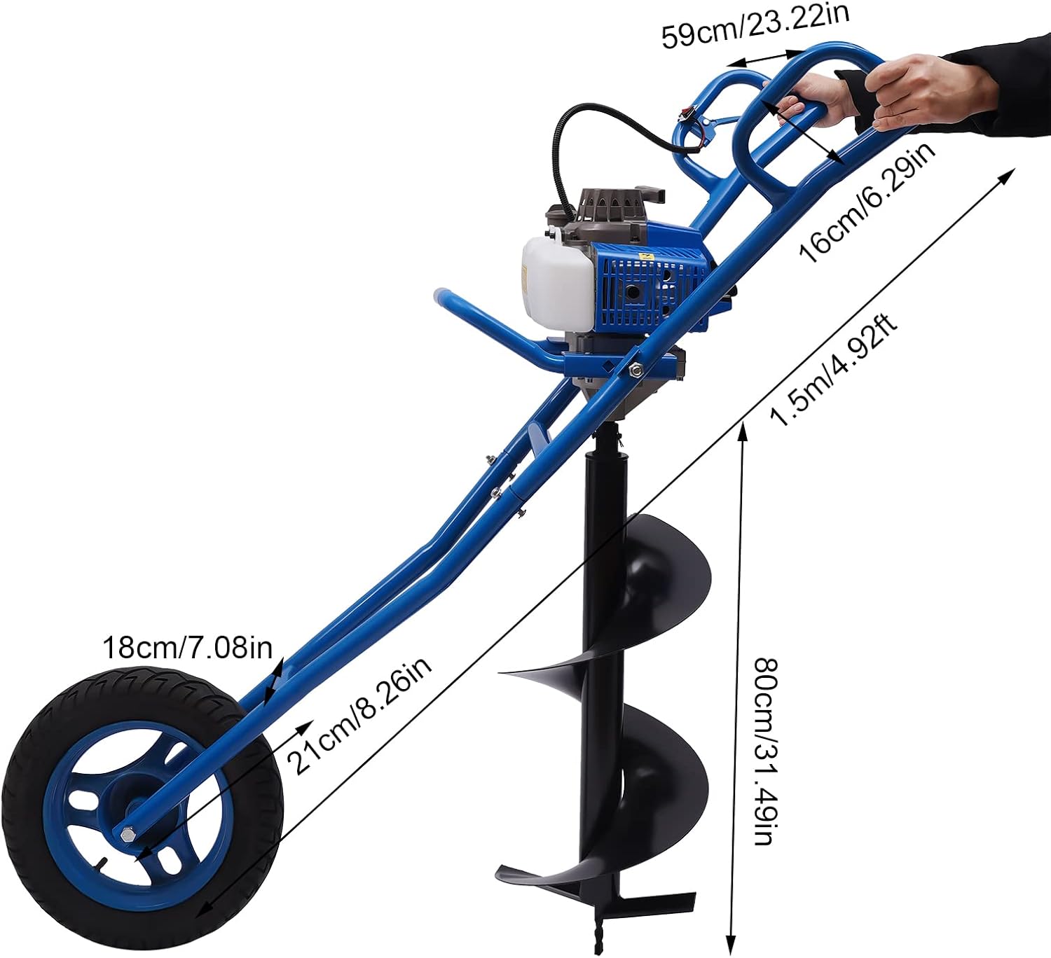 High Efficiency:The high power of 2.2KW, fast rotation speed (8800±300rpm), a drill bit with single blade and high hardness, and a two-stroke engine with stable operation can make your digging work easier to save you lots of time.