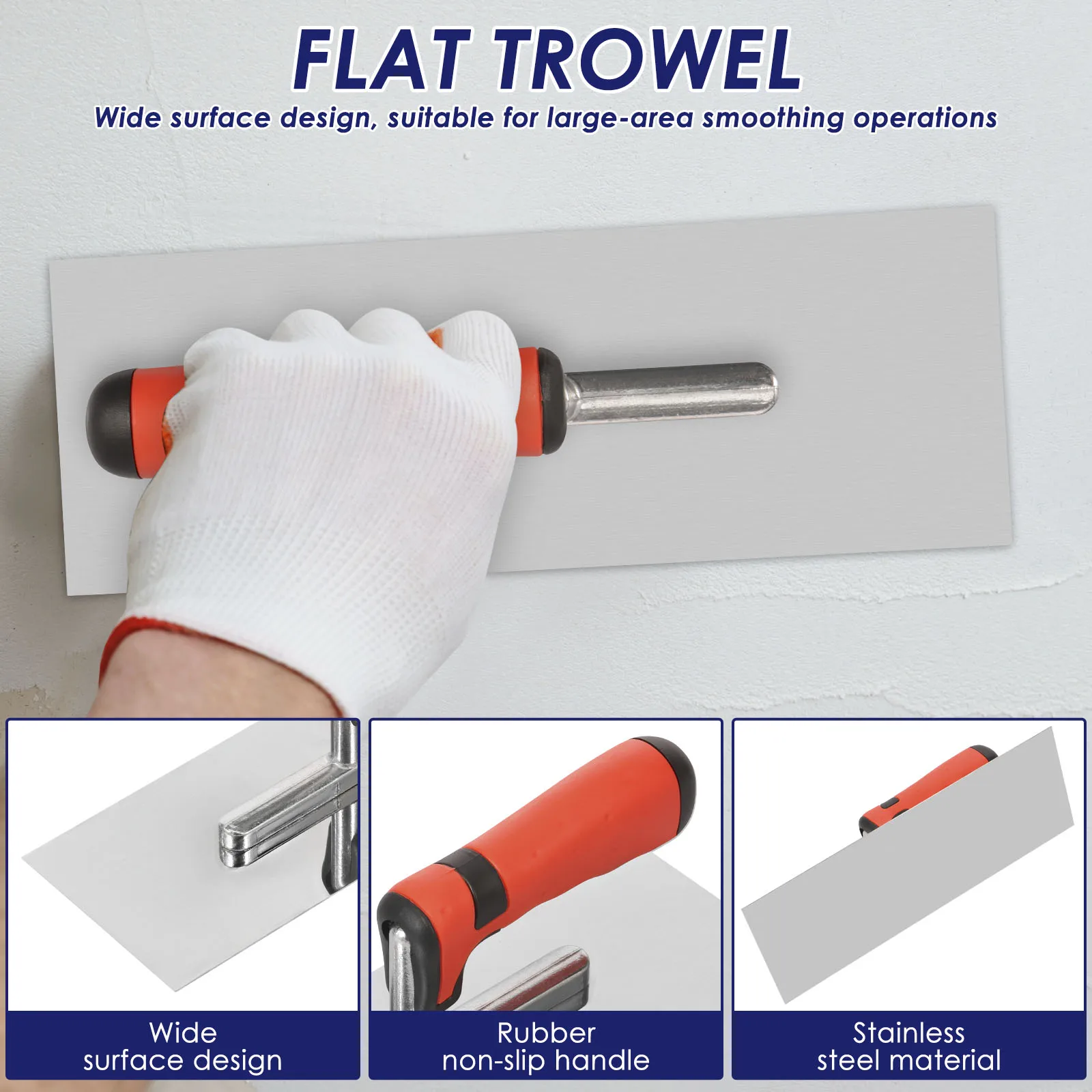 1×Stainless Steel Flat Finishing Trowel