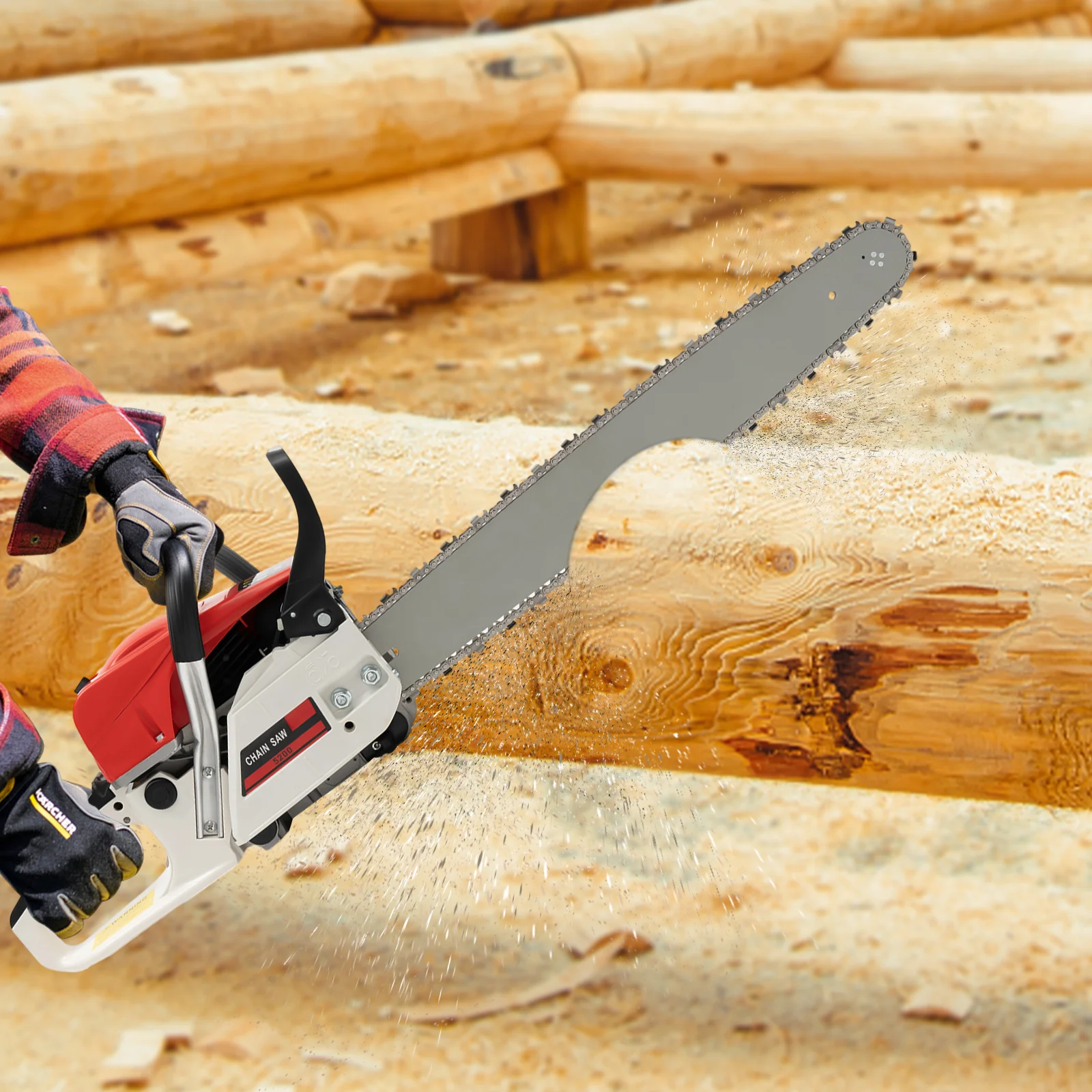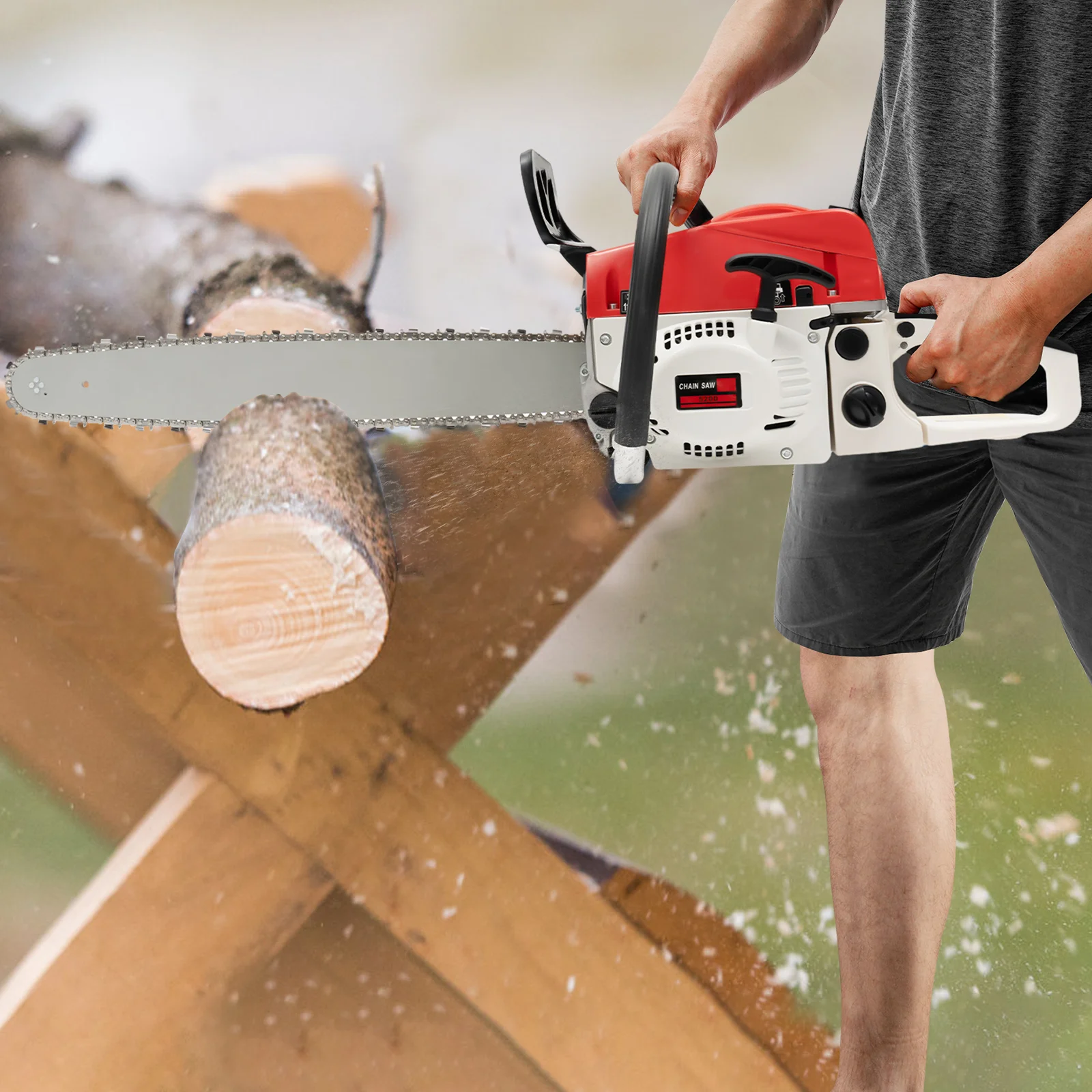 Excellent Performance: The 2-stoke engine with 52cc displacement, 7500rpm high speed, 2.0KW strong power,22" guide chain, and a deep cylinder can achieve fast cutting, thus providing excellent performance.