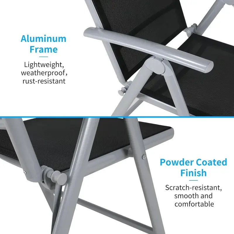 - 【High Quality Manufacturing】The frame and armrests of foldable garden chairs are aluminum rugged, weatherproof and dustproof, you can get count.