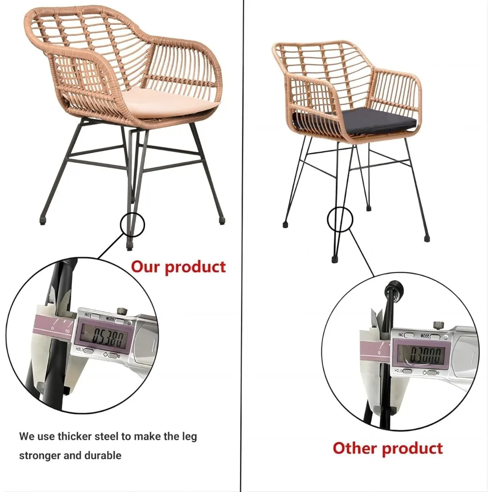 - PATIO BISTRO SET: This patio furniture set includes 2*PE rattan armchairs and 1*circular side table and 2*cushions, which is a perfect addition to your garden, balcony, poolside and more. The luxurious balcony furniture with its elegant outlook, delicate details and modern tone, will be an artwork in patio,deck,garden,backyard,poolside, etc.