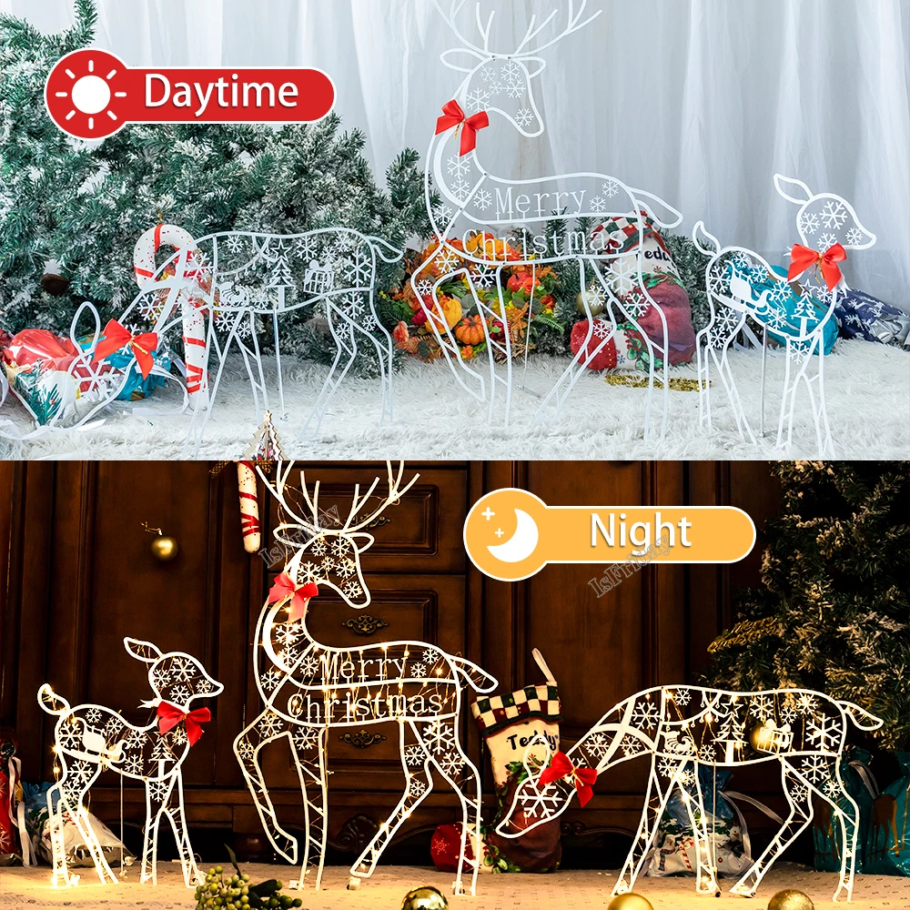 Holiday Elegance – Embrace this radiant reindeer Christmas decoration, featuring a magnificent buck, a graceful doe, and a charming fawn in a set of three decorations, to elevate the holiday atmosphere by adding our fantastic Christmas decorations indoor and outdoors to your home with a delightful touch of Christmas enchantment.