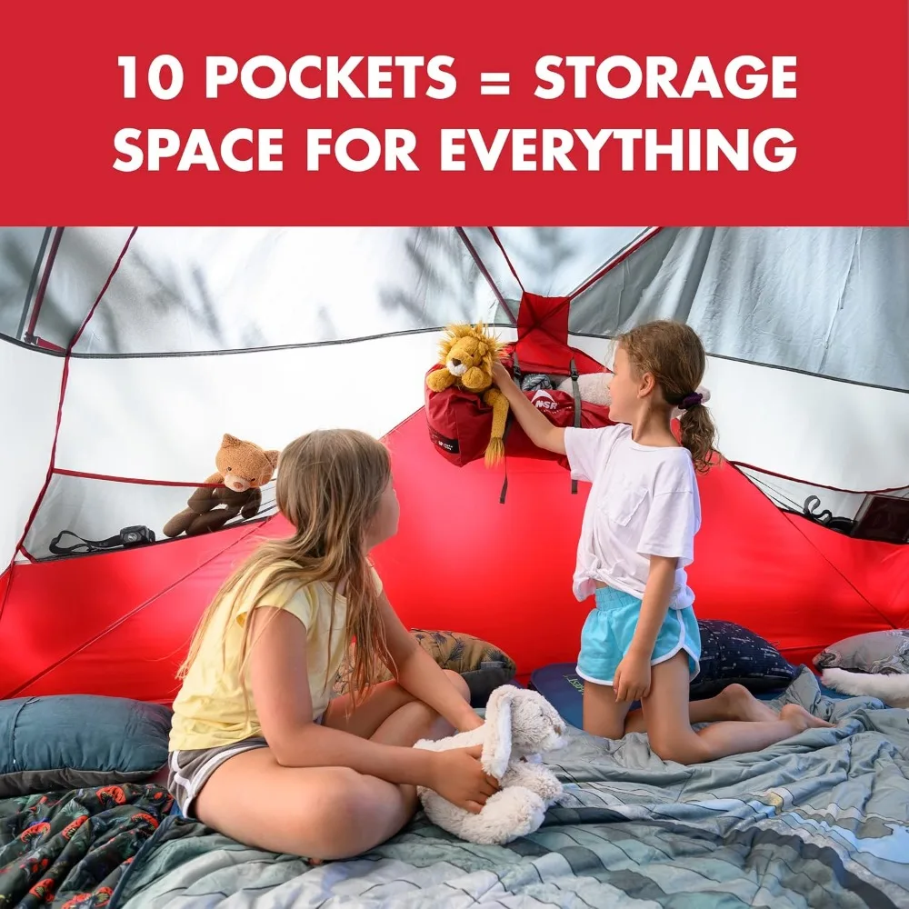 - Ten internal pockets, placed high and low, keep essentials organized while ceiling loops let you add accessories like lanterns, light strings and laundry lines