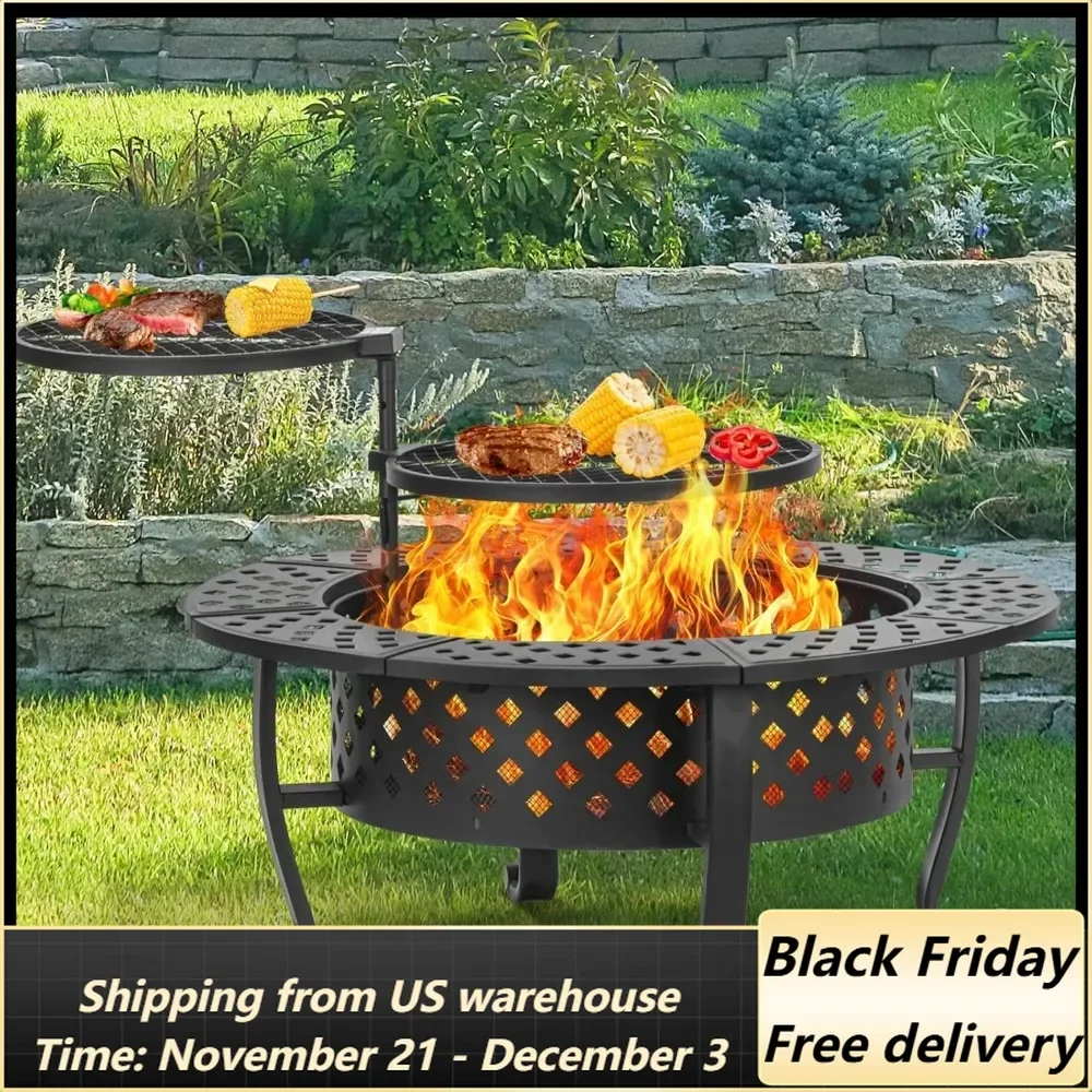 [What Will You Get]The package contains 1 fire pit, 1 lid, 1 fire poker, 2 cooking grates and all parts required for assembly.