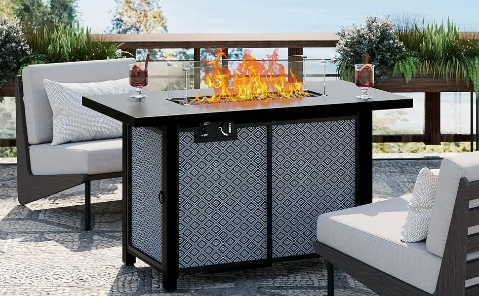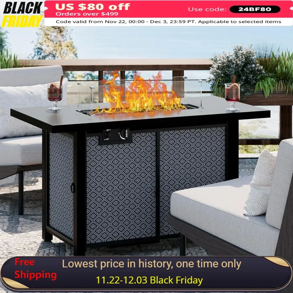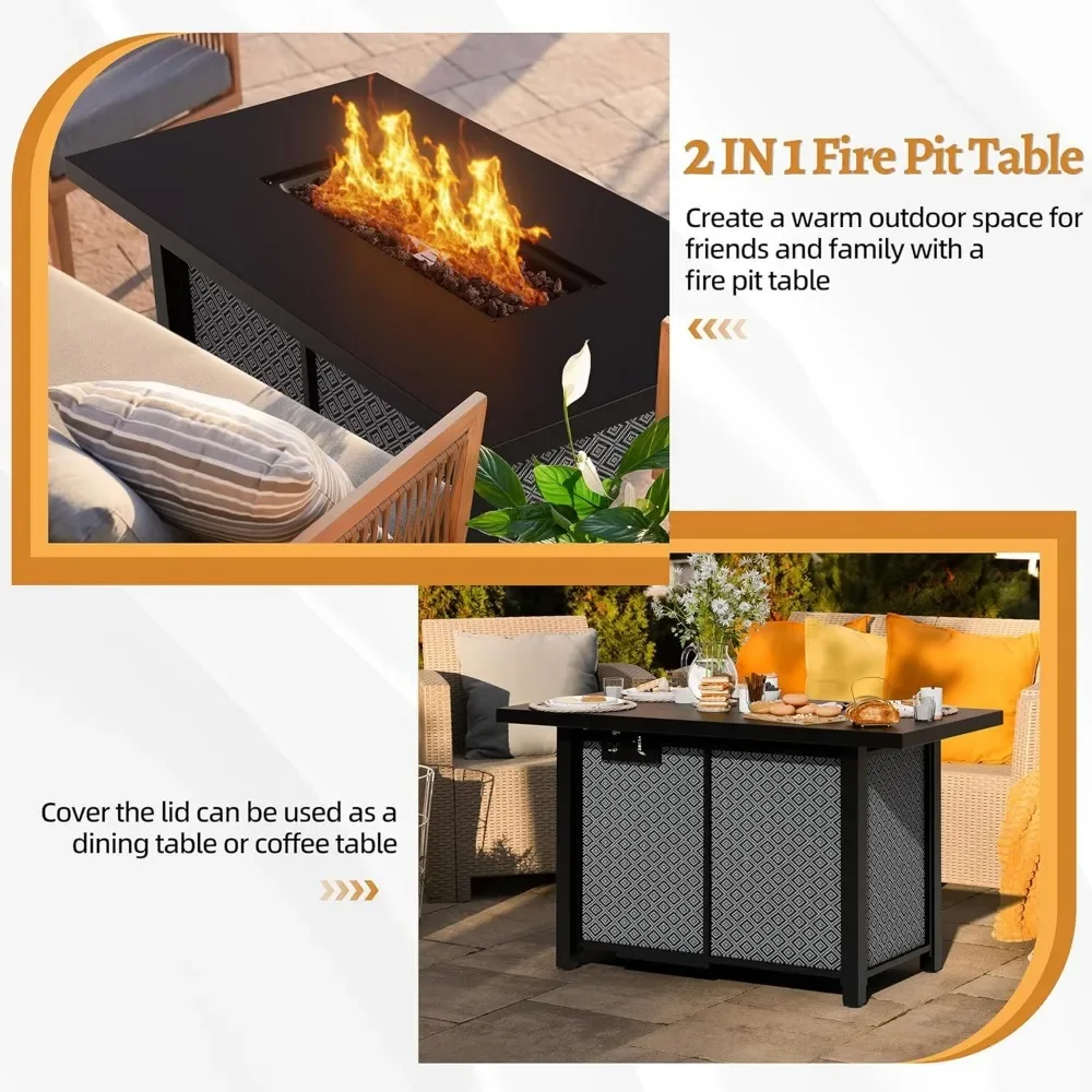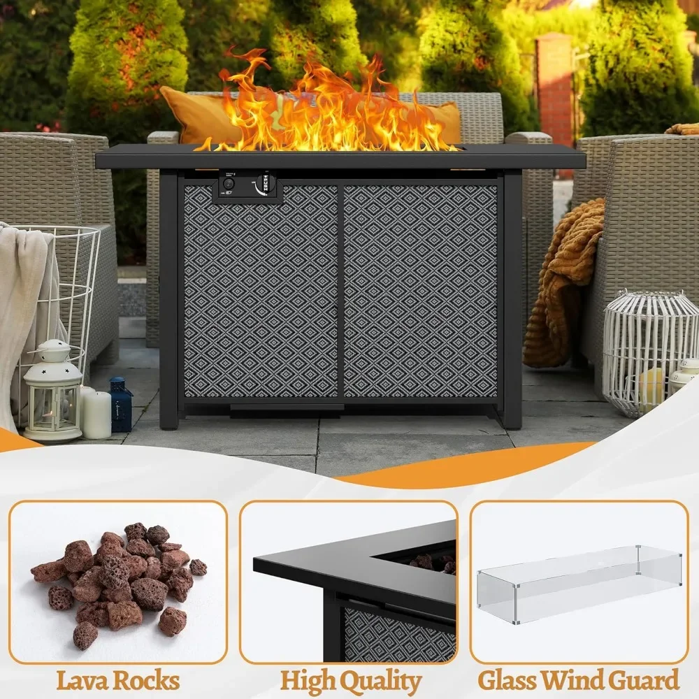 43 Inch Propane Fire Pit Table,50,000 BTU with Glass Wind Guard, Lava Rocks, Waterproof Cover and Lid,Outdoor Gas Fire Pits