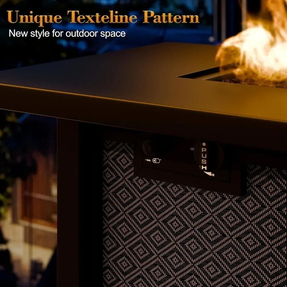 • Outdoor Fire Pit: The propane fire pit table is designed with a steel frame and texteline-style panels for exceptional strength and durability. The stainless steel burners resist rust and corrosion for long life, while the adjustable feet provide stability on uneven ground