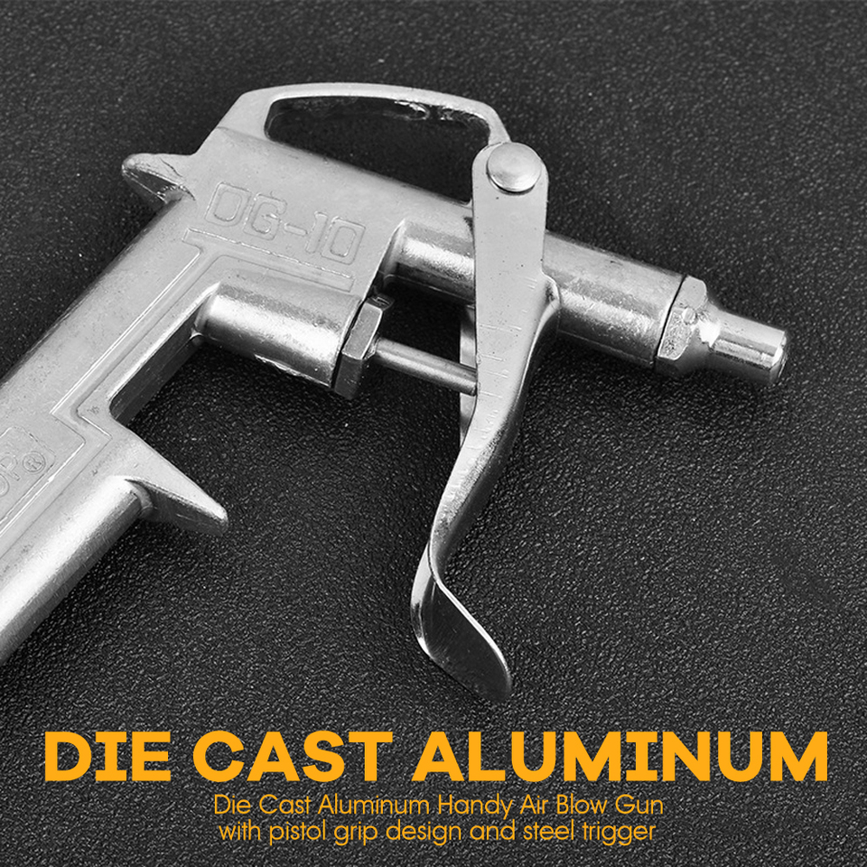 ● Die Cast Aluminum Handy Air Blow Gun with pistol grip design and steel trigger.