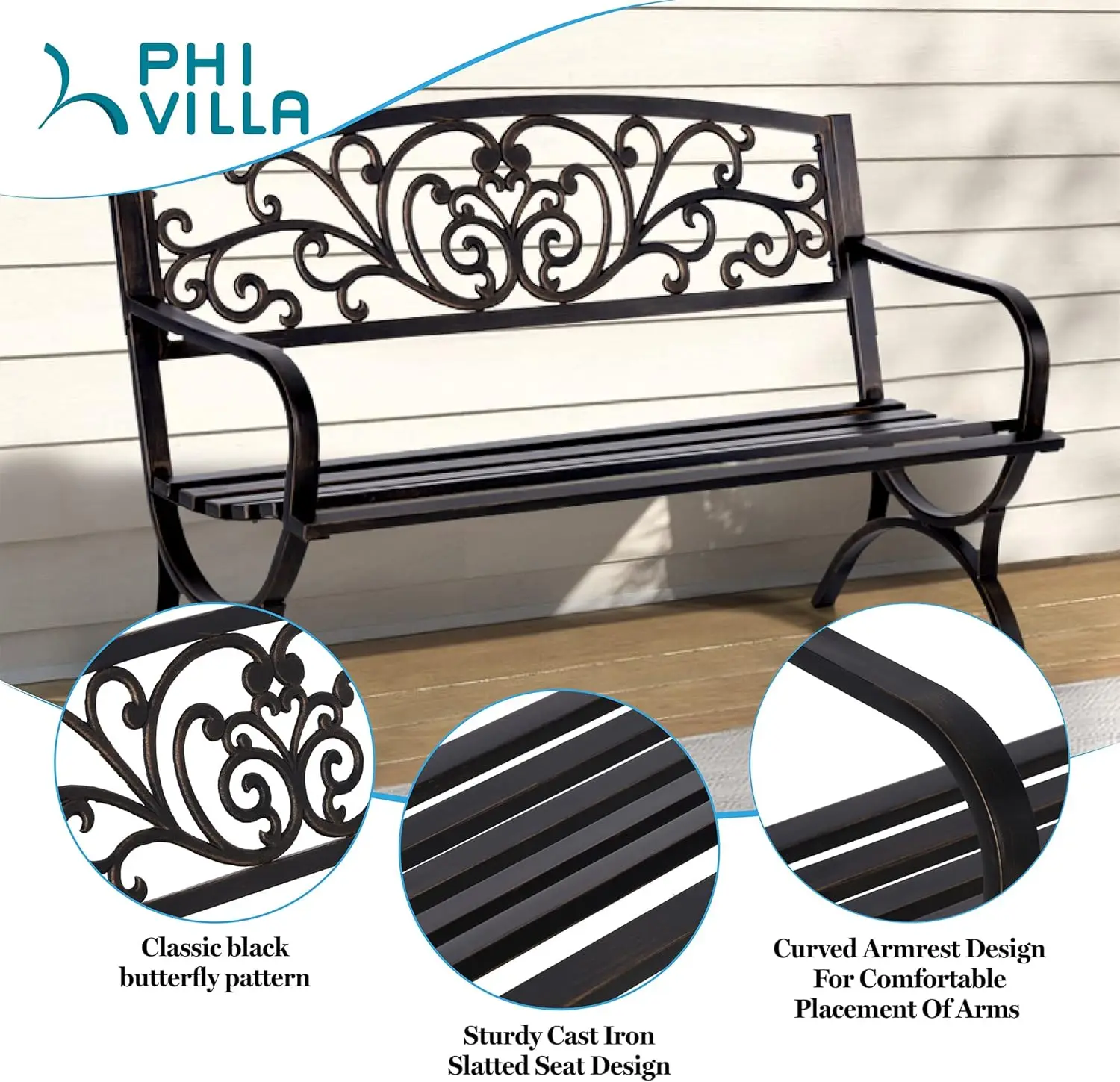 PHI VILLA Cast Iron Garden Bench Enjoy your life!