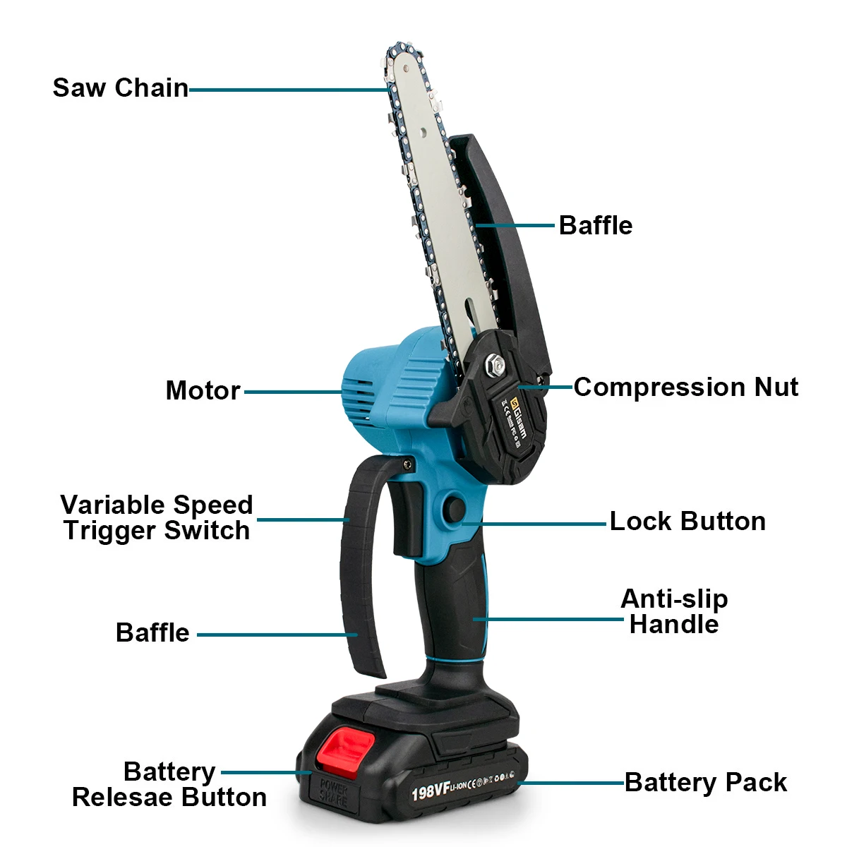 feature 6: chain battery mini chainsaws