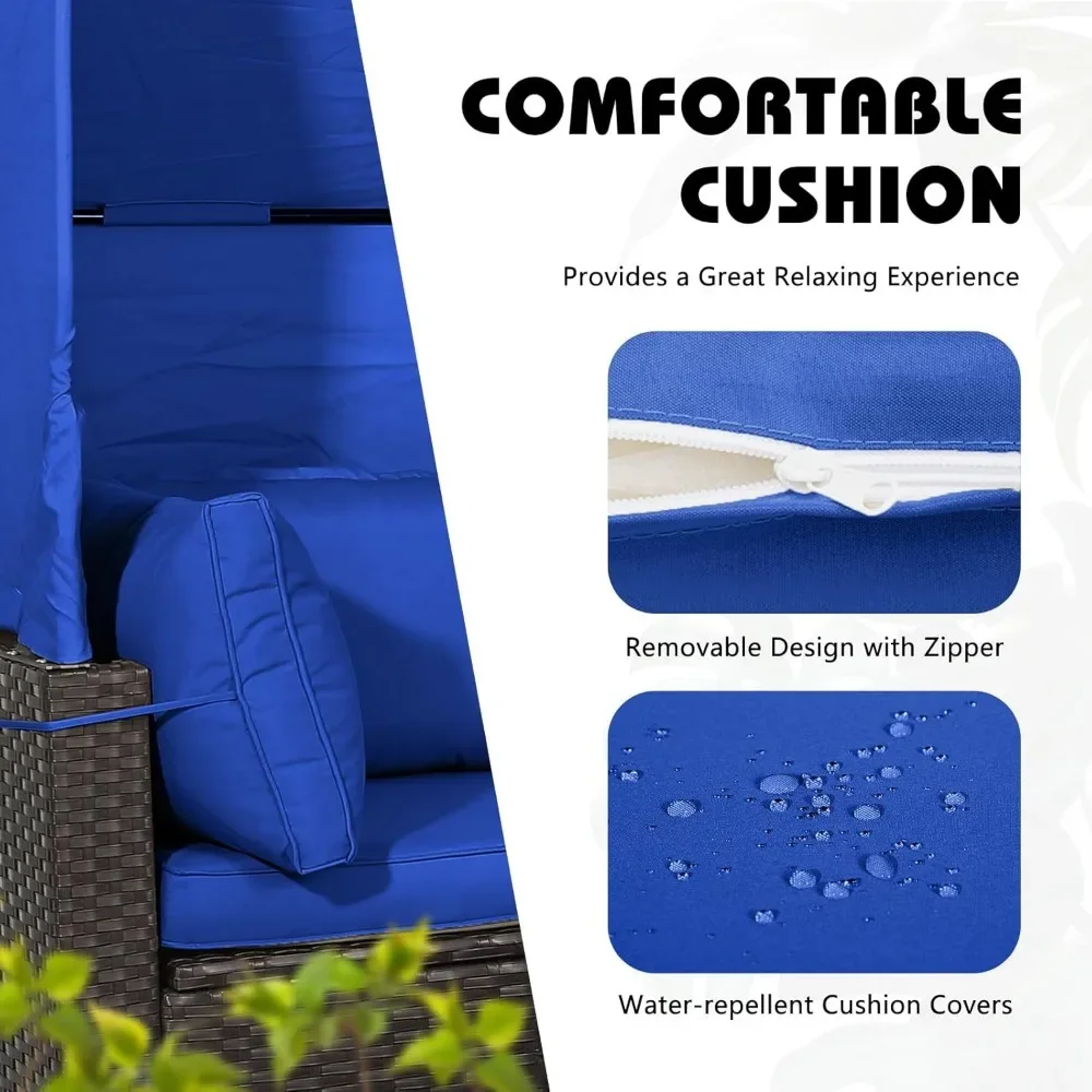 The daybed features a retractable canopy, allowing you to bask in the summer sun while staying shielded from excessive heat. The 5 adjustable reclining positions on one sides of the daybed offer customized angles to support your back and legs, ensuring you have the perfect lounging experience with your family and friends.