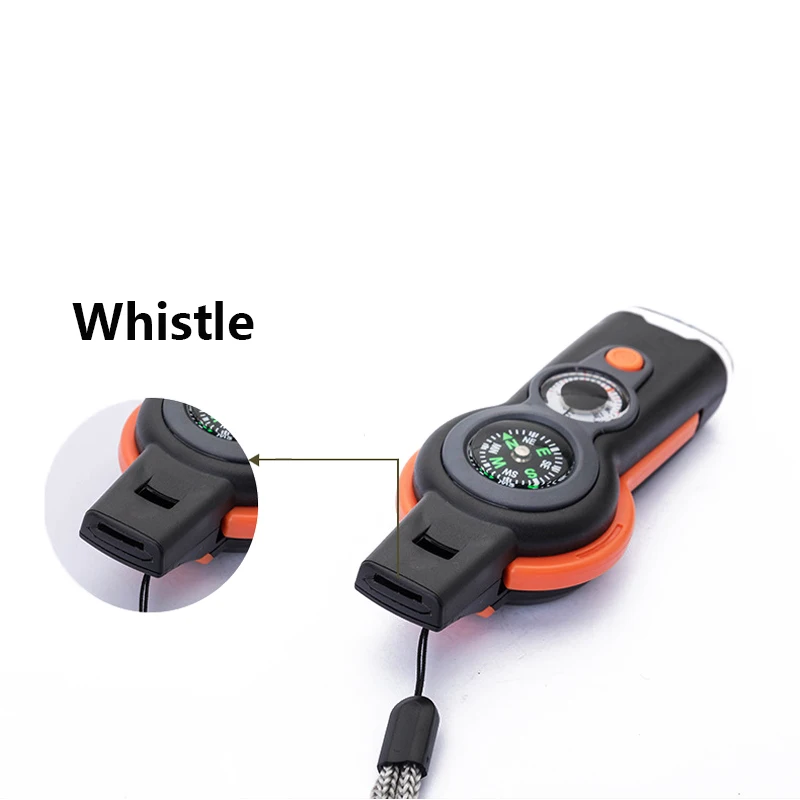 7 in 1 Survival Emergency Tool Whistle Compass Thermometer Magnifier Flashlight