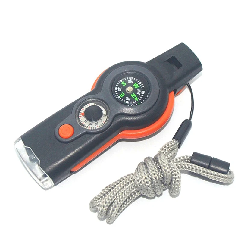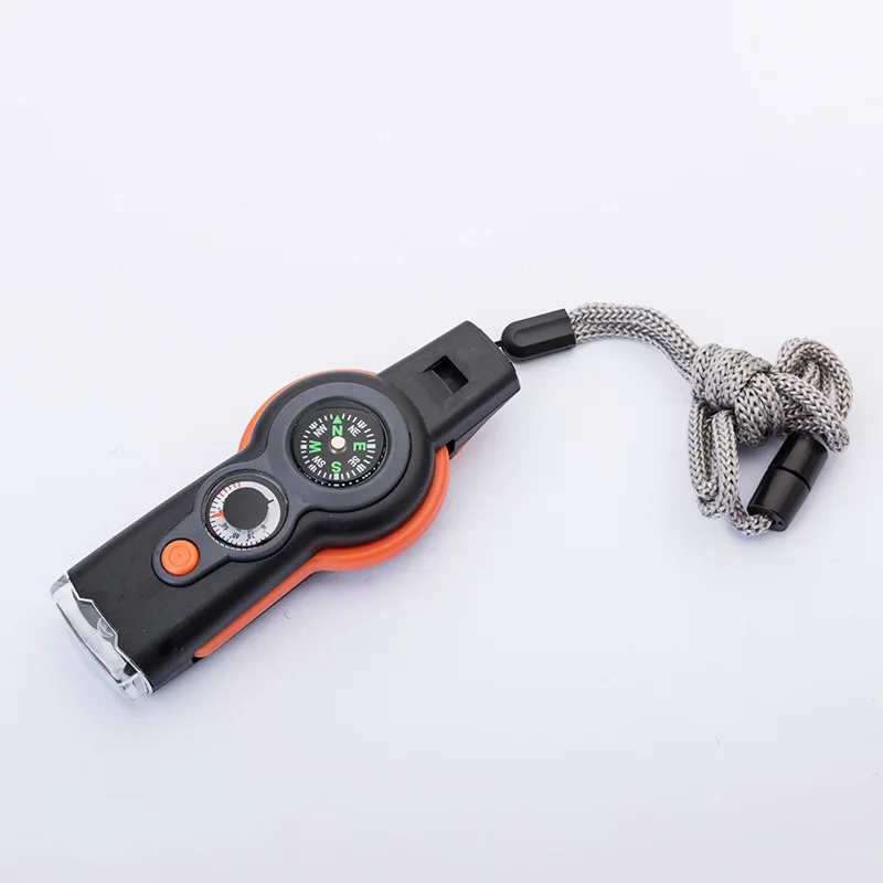Lightweight 7 in 1 multifunctional survival whistle.