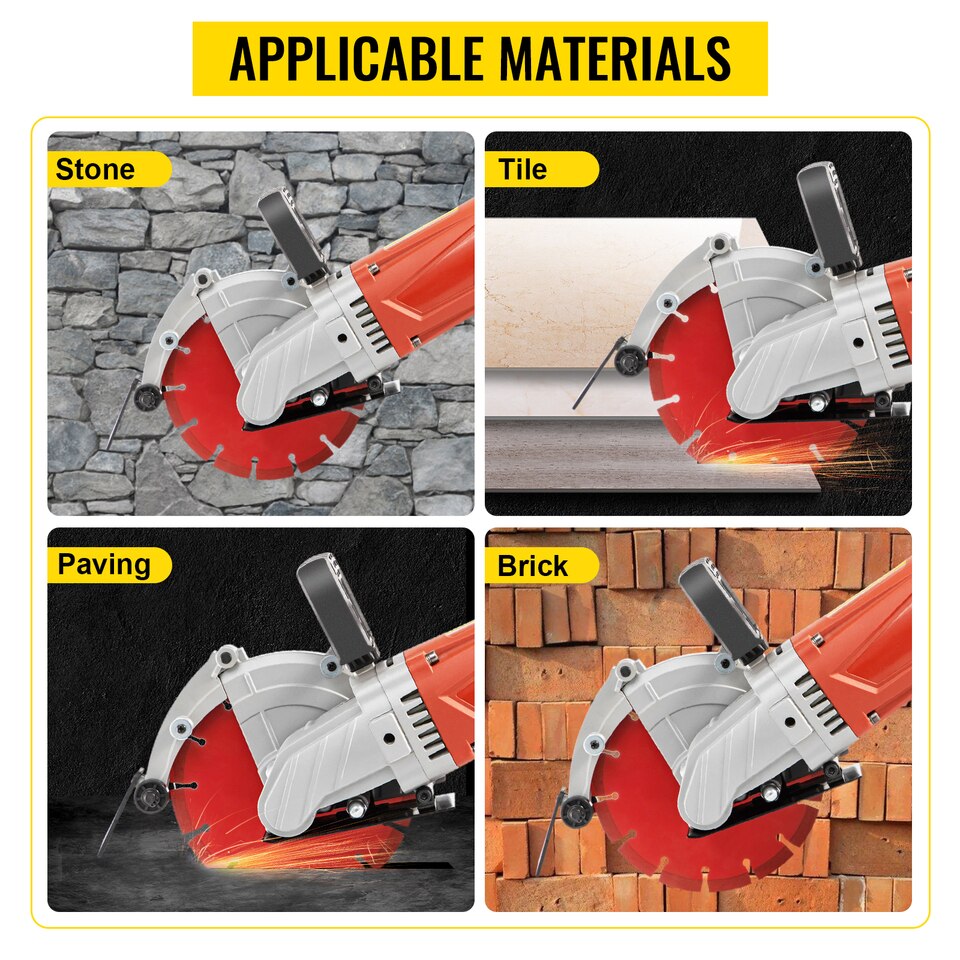 • Multi-function Concrete Saw: The electric concrete saw efficiently delivers the power to cut through granite, brick, porcelain, reinforced concrete, bricks, wood, and other materials. It is perfect for factories, workshop, home, timber industries, and DIY.
