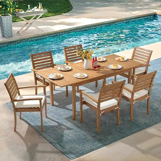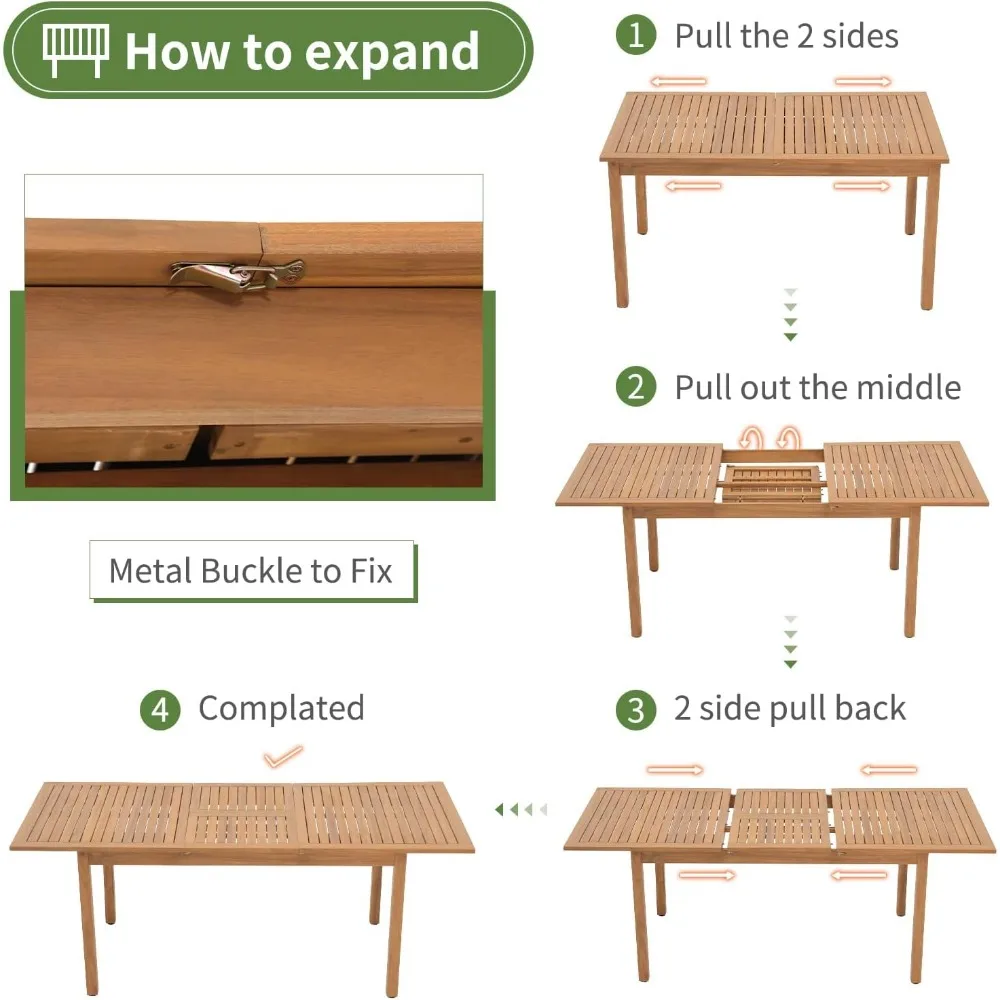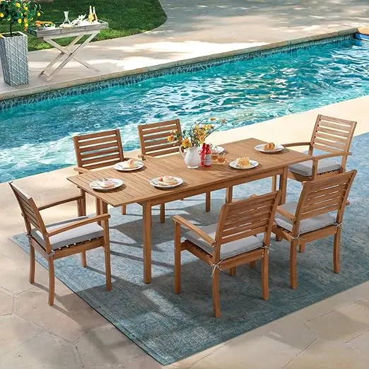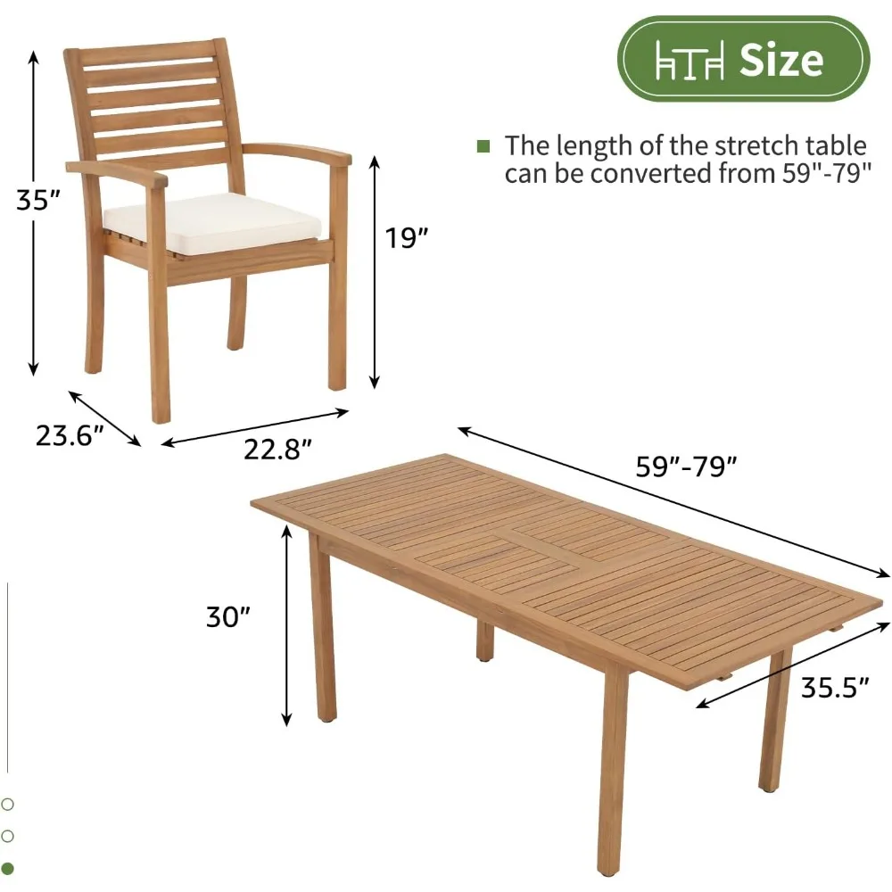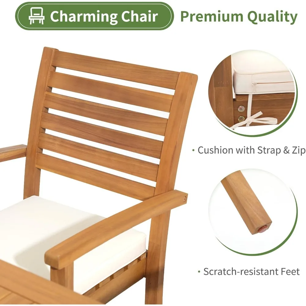 - Madera certificada FSC: nuestro juego de comedor al aire libre de 7 piezas está construido con madera de acacia sostenible certificada FSC para garantizar que la silla pueda soportar hasta 300 libras. La superficie está recubierta con pintura al óleo de alta calidad, lo que hace que la mesa y las sillas de patio sean resistentes a la intemperie y construidas