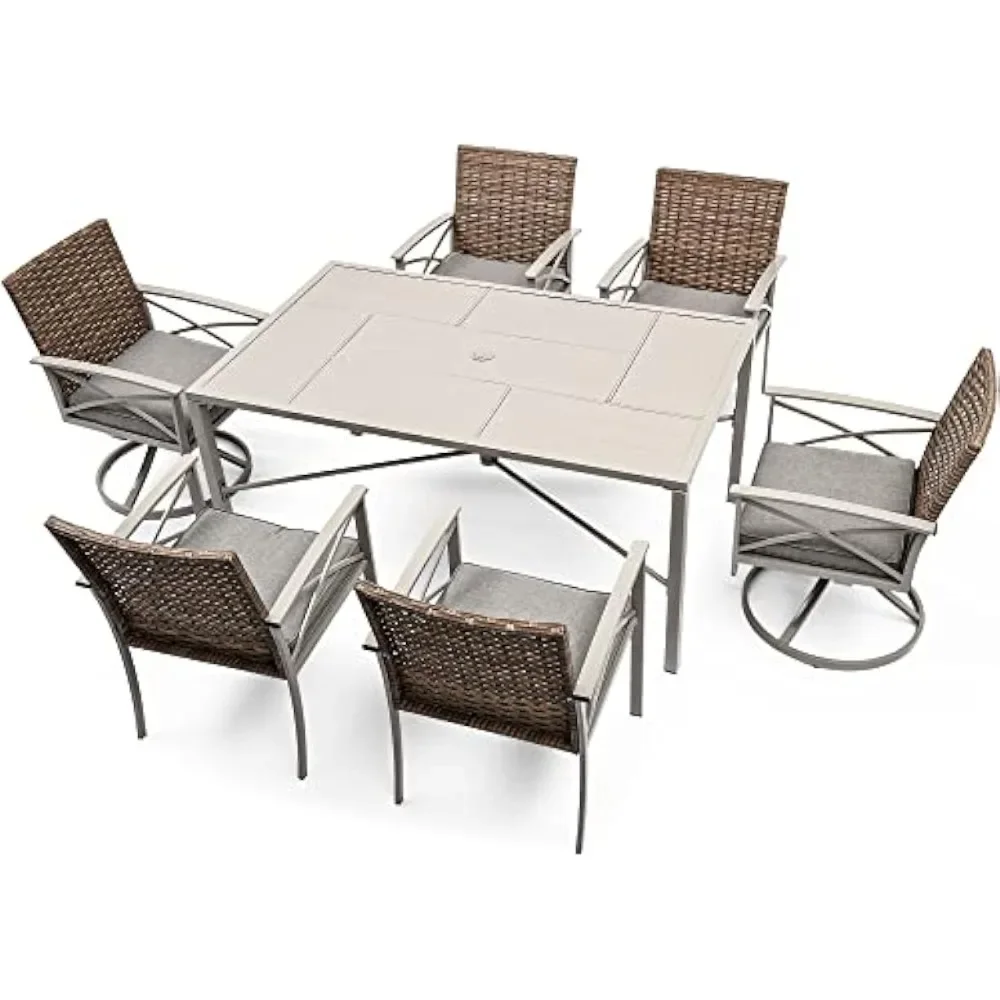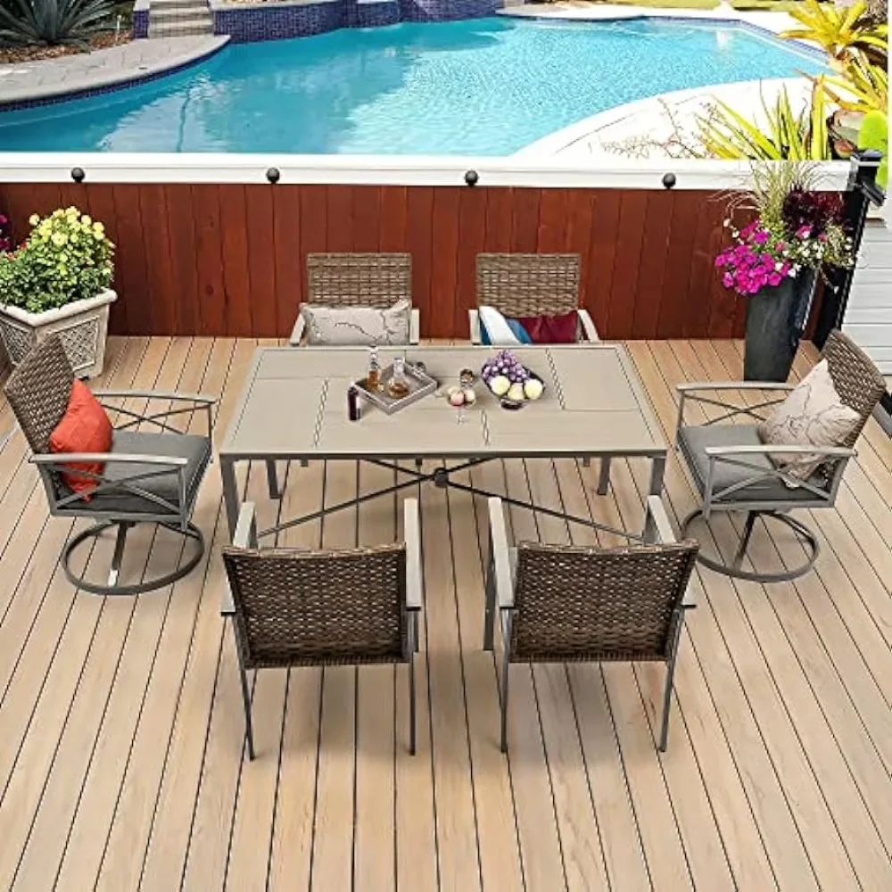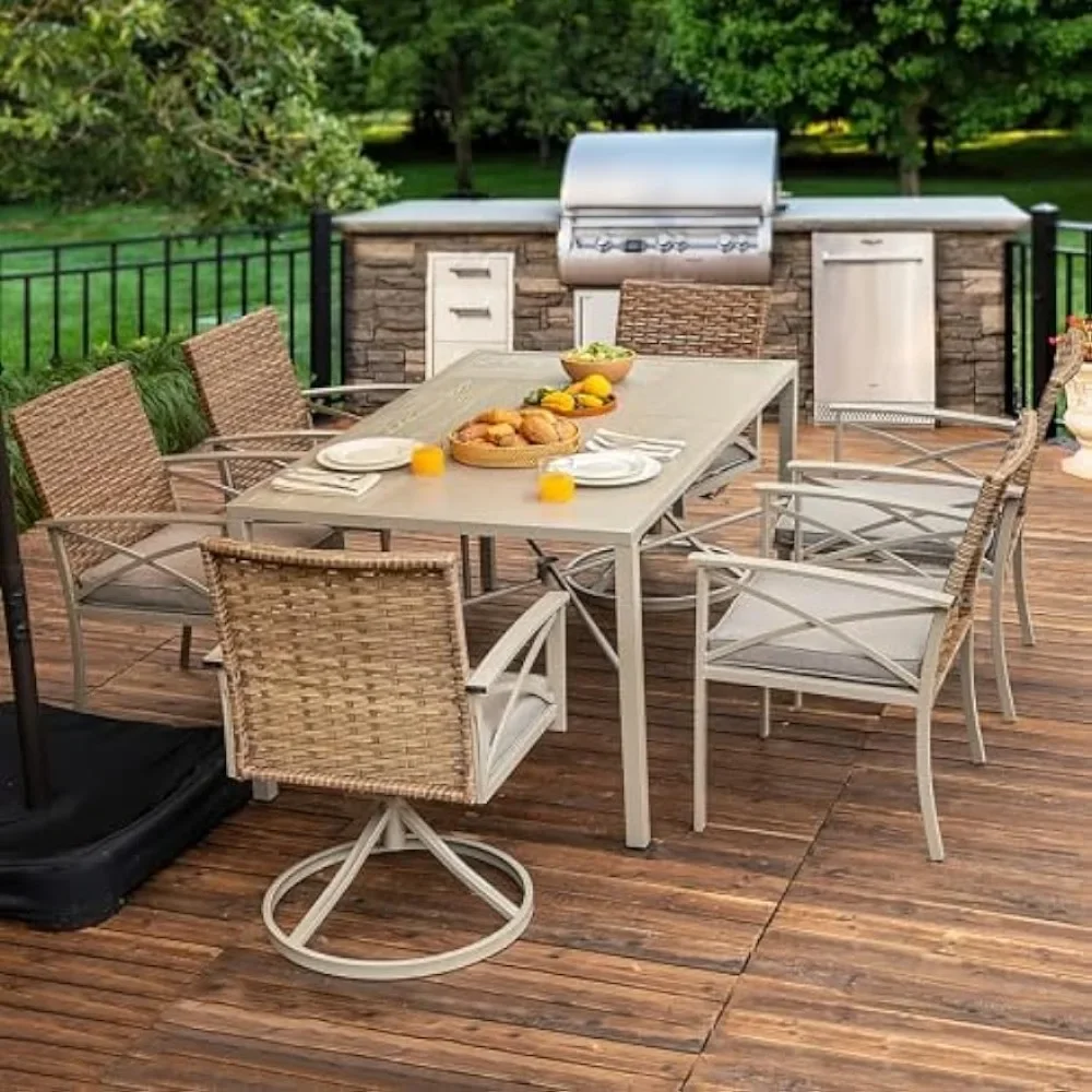 7-Piece Patio Dining Set: The elegant patio conversation set features a rustic wicker style supported by stable and strong iron construction; Has strong weather resistance and durability for indoor, outdoor, living room, dining room, backyard, and poolside use