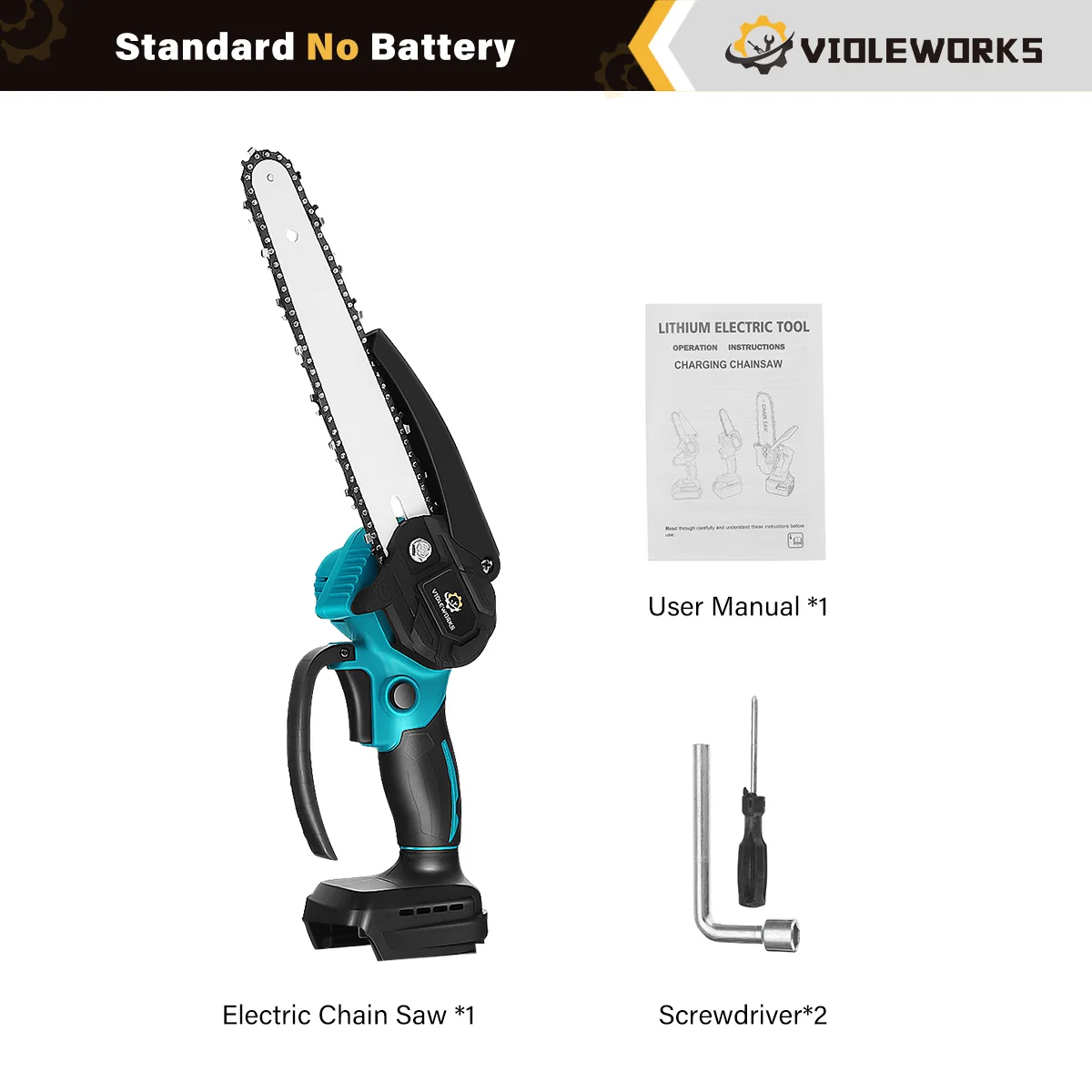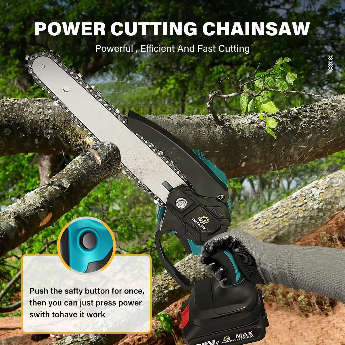 – Sharp & Strong Chain:High quality alloy chain, wear-resistant and durable, fast and smooth sawing without jamming.- Wide Application:This electric chainsaw has a wide range of uses, can be used for Forest cutting, cutting wood, pruning branches and so on.