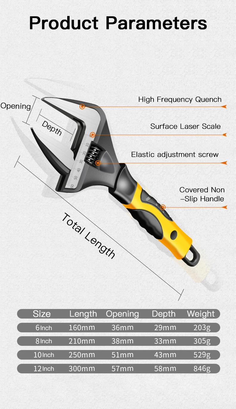AIRAJ 6/8/10/12 Inch Bathroom Wrench High Strength Household Adjustable Large Open Wrench High Quality Plumbing Repair Tool