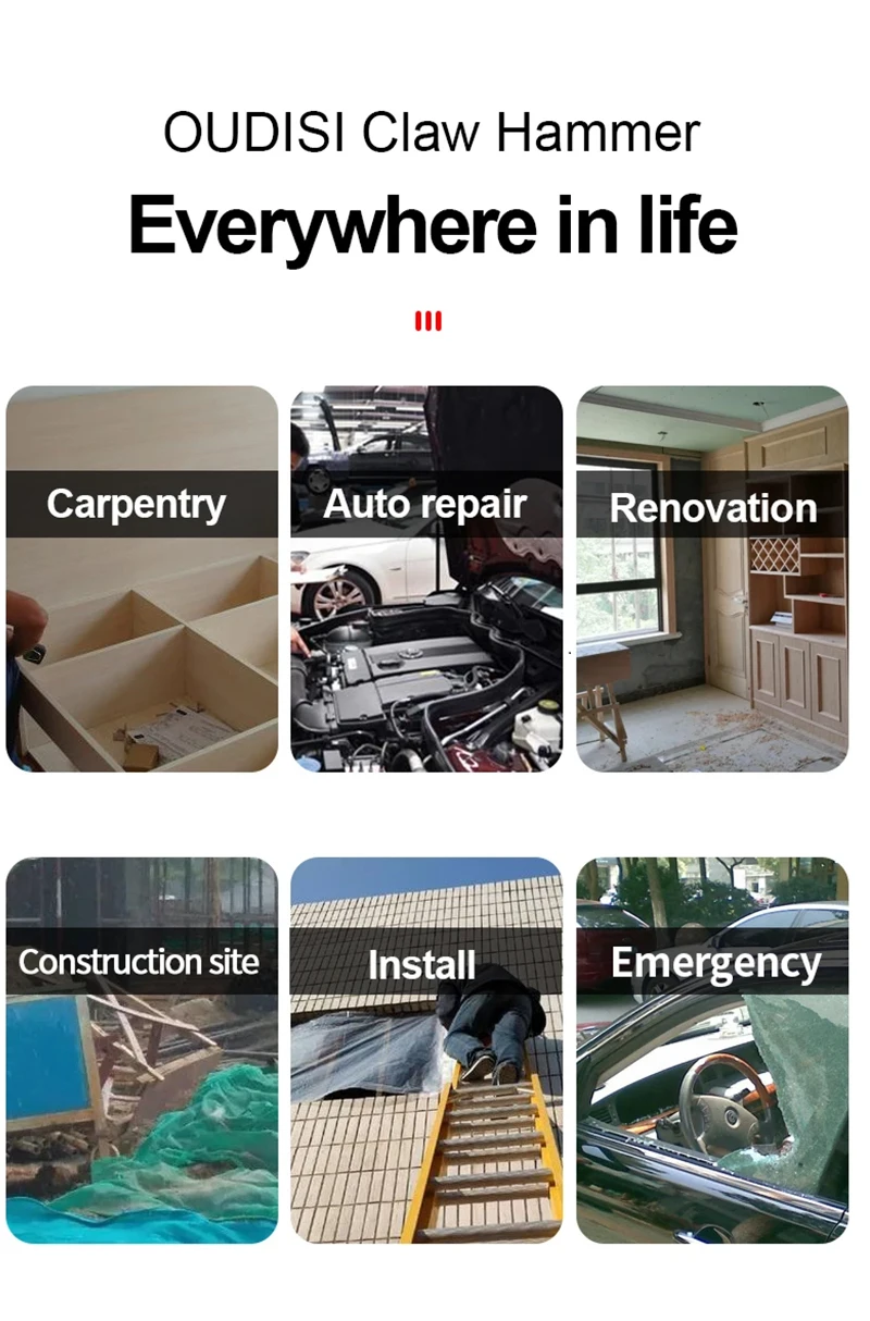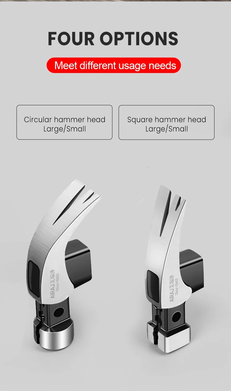 AIRAJ Short/Long Handle Claw Hammer Double Nail High Carbon Steel Household Durable Anti Slip Industrial Grade Hand Tool