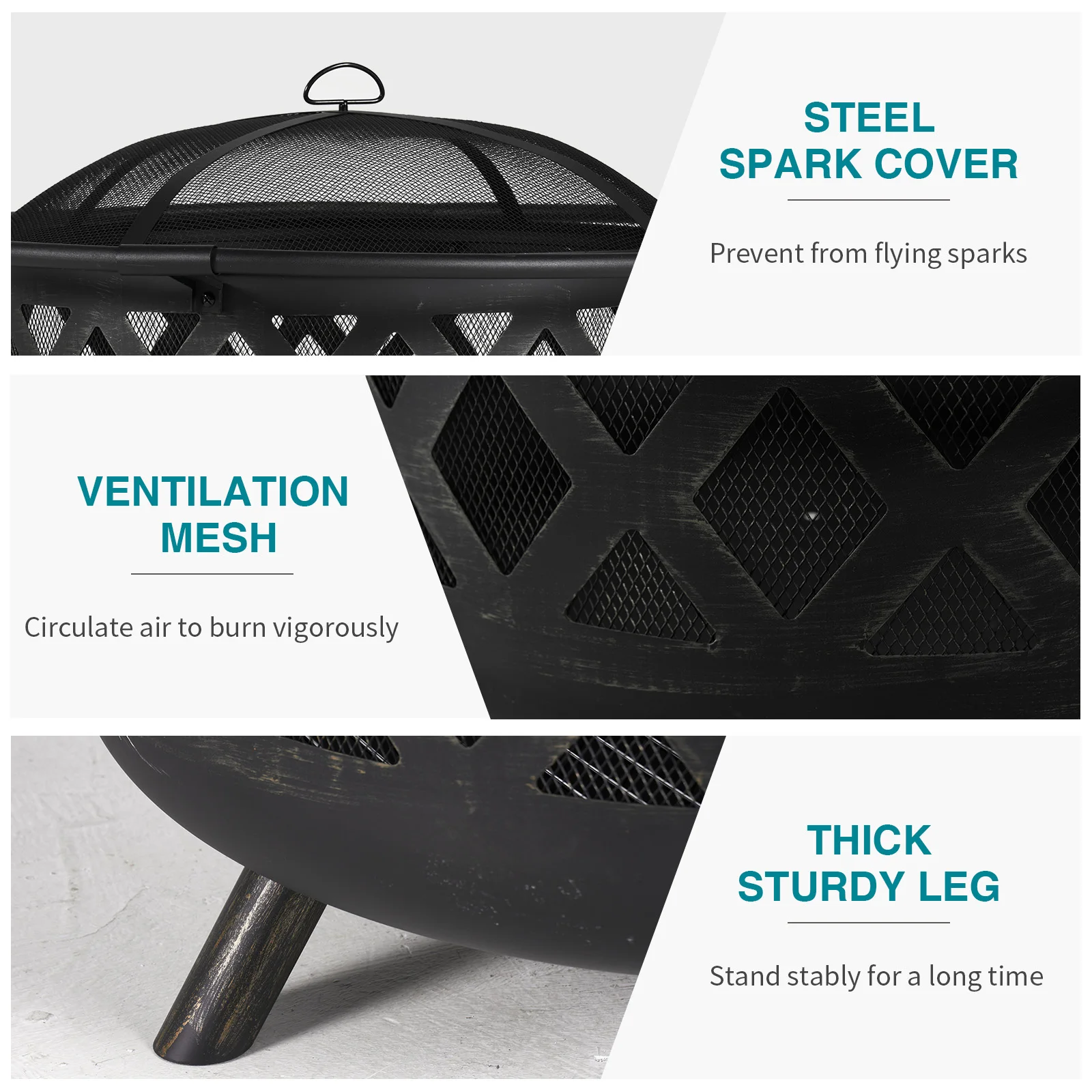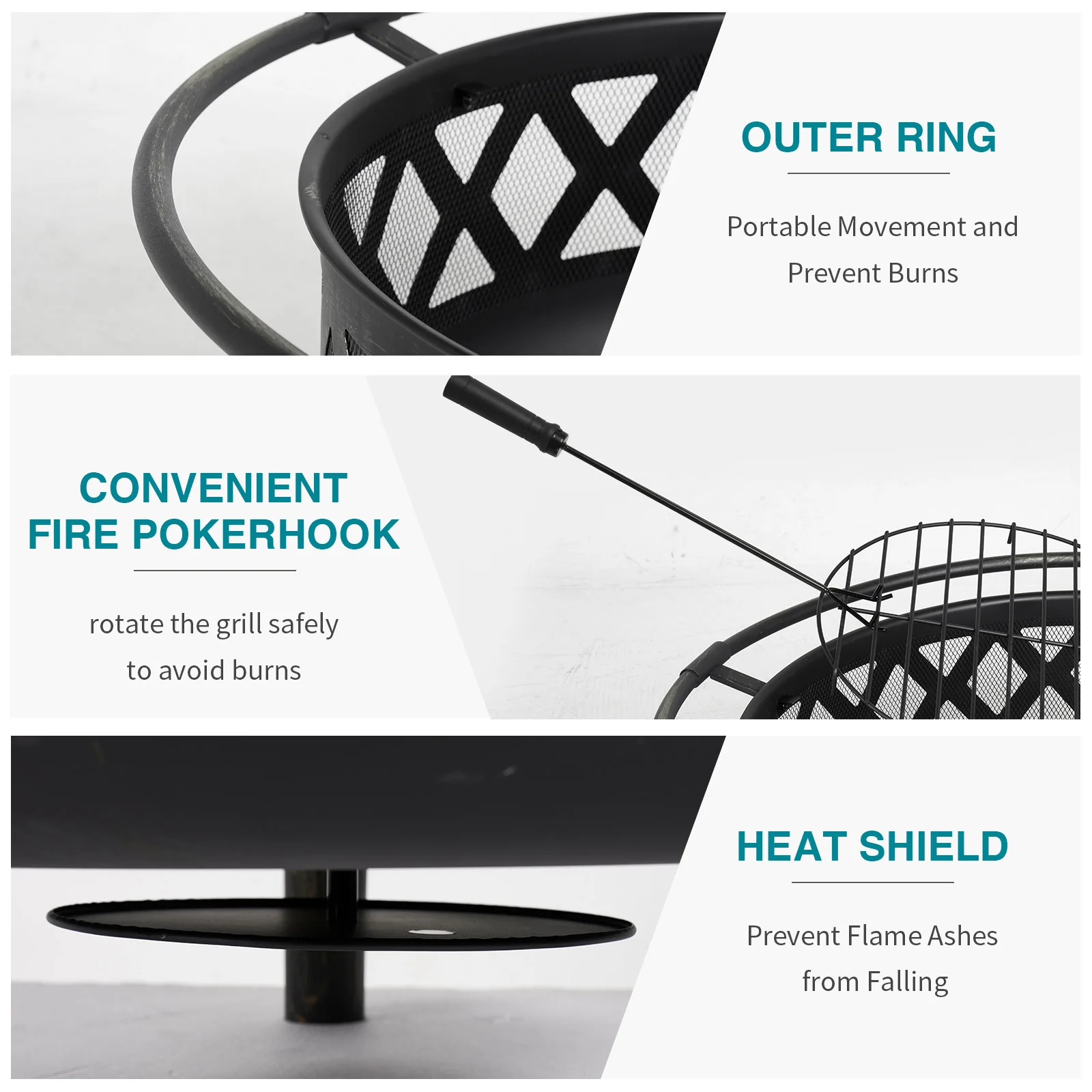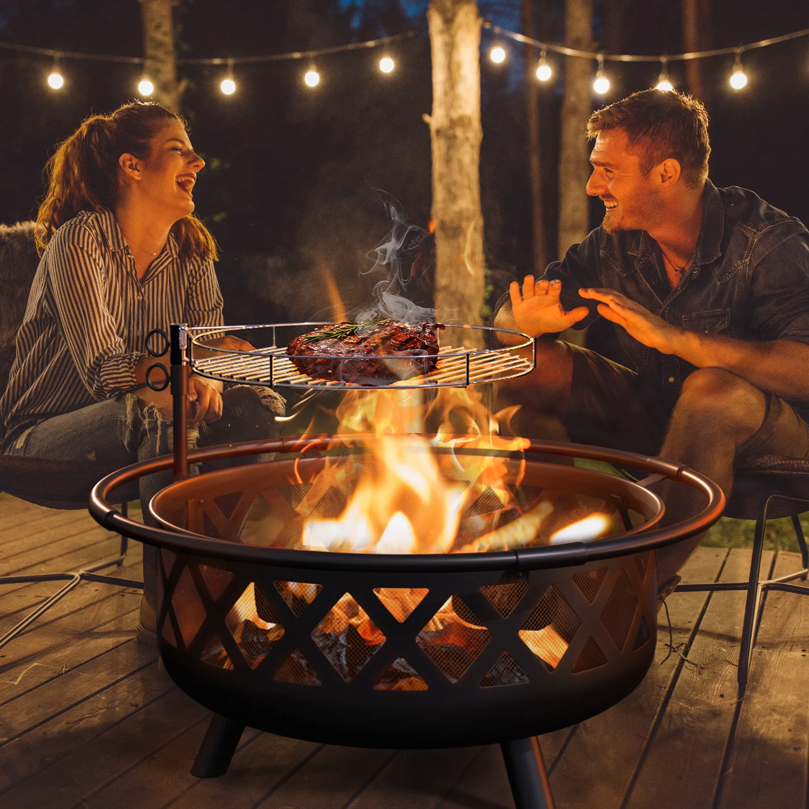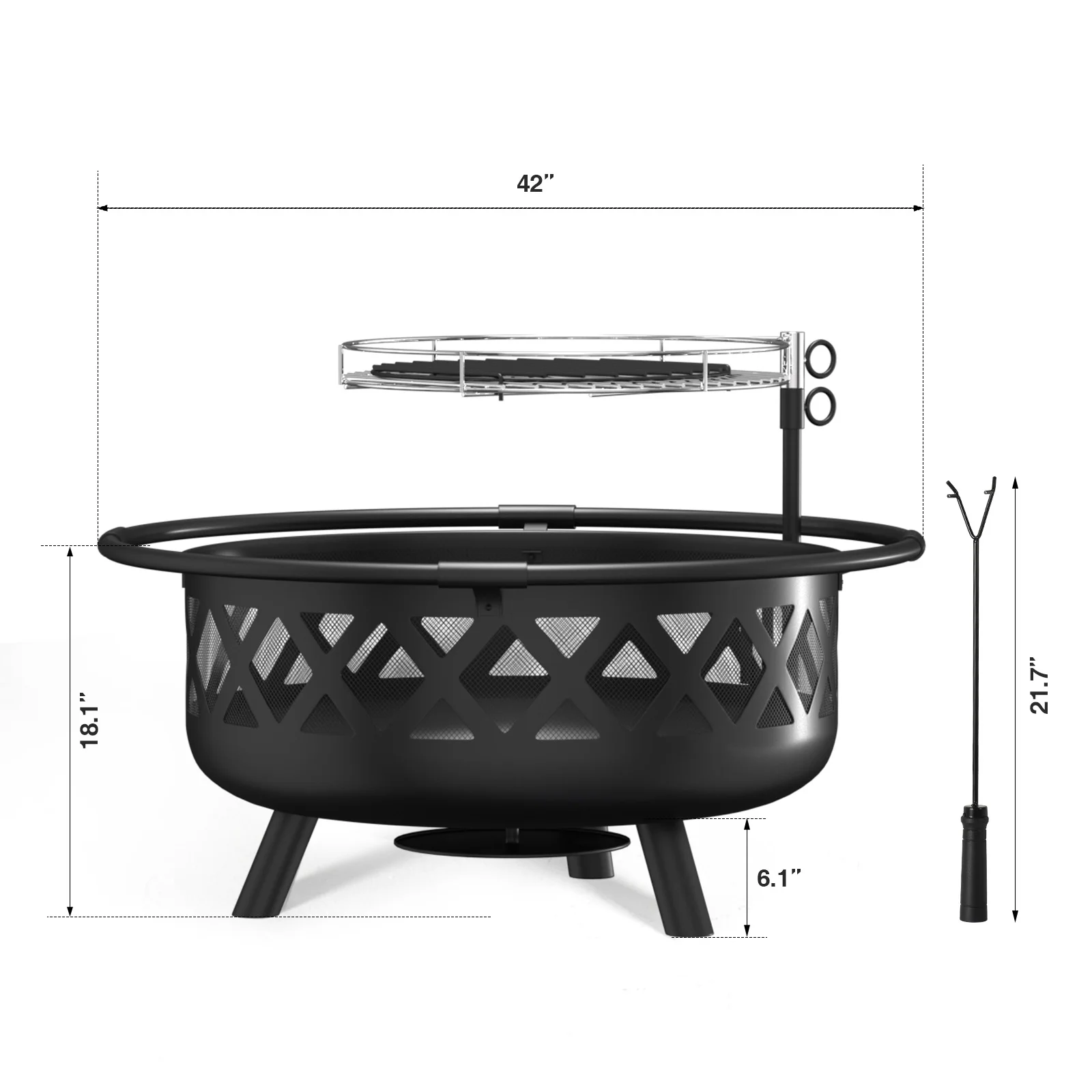 Aoxun Fire Pit, 42" Outdoor Wood Burning Fire Pit with Large Grill, BBQ Large Fire Table for Camping, Heating, Picnics