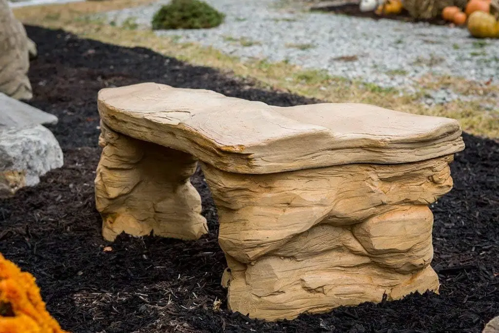 Cast Stone Petrified Rock Bench, Commercial Grade Concrete Benches, 3 Piece Concrete Bench, Hand Sculpted Fine Cast Stone Patio