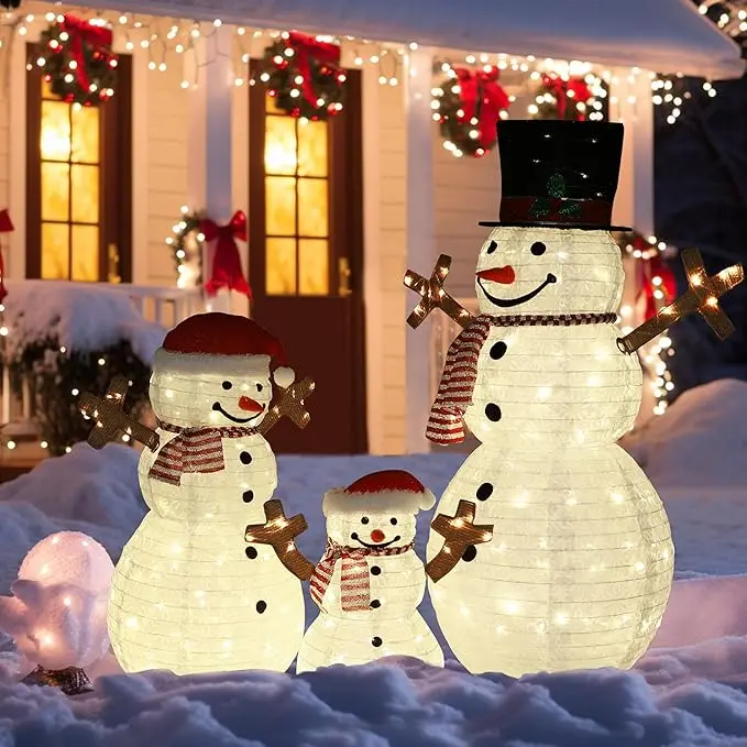 - Snowman Family – Create a magical holiday landscape with our family of three bright snowman decor. The three snowmen have different shapes and attract a lot of people to watch with their lovely appearance.