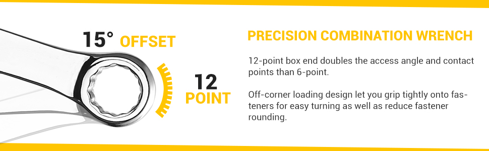 EASY TO USE: The box end is offset 15 degrees to create clearance for fingers and make it easier to reach obstructions around. Precision 12-point box end allows easy fastener engagement without slippage and prevents fastener round-off.