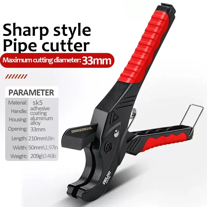 DELIXI ELECTRIC Pipe Cutter,Pipe Scissors SK5 Material Ratchet Cutter PVC/PU/PP/PE Hose Cutting Hand Tool,for Plumber,Homeowners