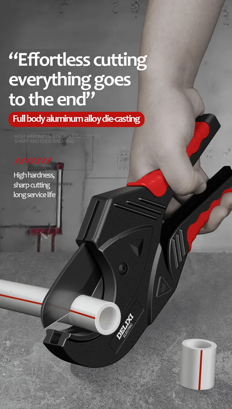 1.Aluminium Alloy Blade :Crafted from an aluminium alloy, the DELIXI ELECTRIC Ratchet PVC Pipe Cutter ensures durability and longevity, providing you with a reliable tool for your plumbing needs.