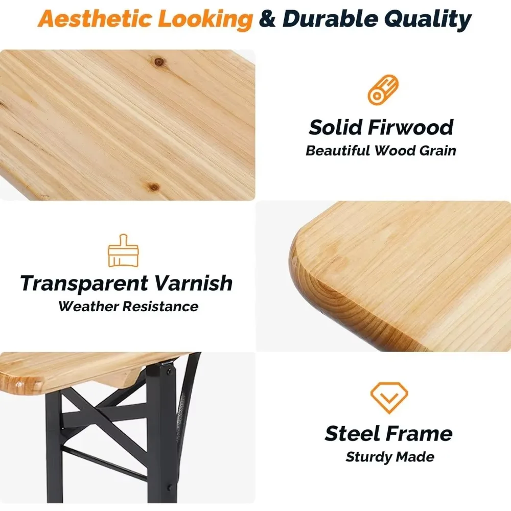 - Durable Construction – The tops of beer table and bench are made of wood which is smooth and comfortable. It is easy to clean and suitable for outdoor use.