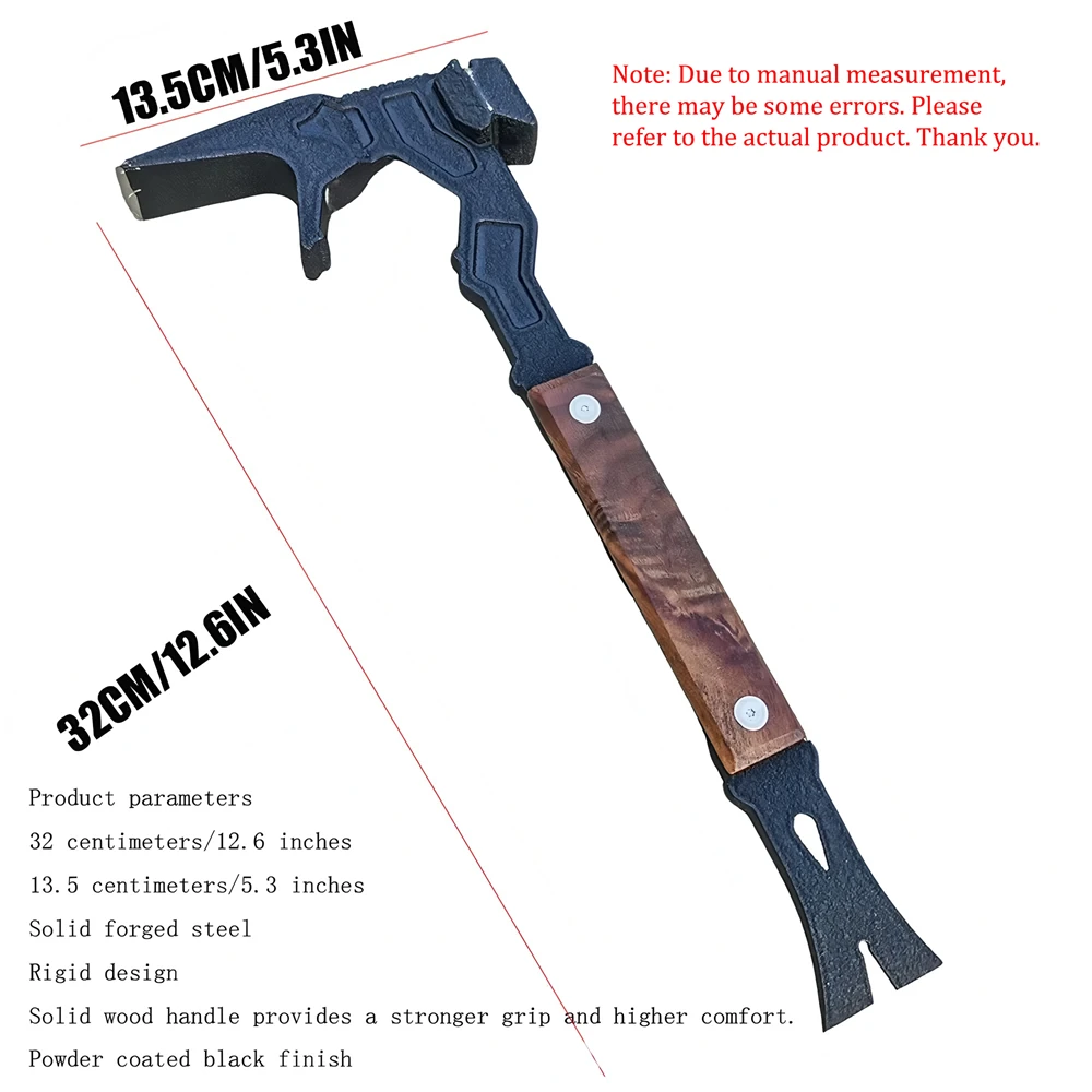 Outdoor Multifunctional Hammer Demolition Tool Hammer Hand Tool with Crowbar Fire Rescue Tool Window Breaker Outdoor Survival Tactical Axes Mountain Camping Self Defense Axe Car Mounted Fire Rescue Axes Outdoor Tools