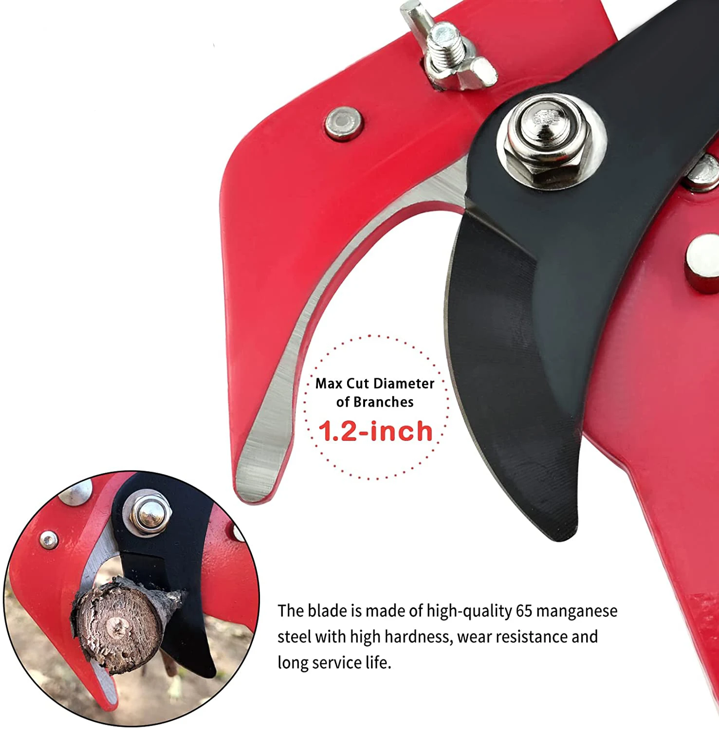 ✦✦Pulley Design : Extendable tree pruner made of HSS material,hgh quality of spring,won't be deformation and fracture.Compound pulley system to cut down dense branches with the least effort.Save your time and energy.
