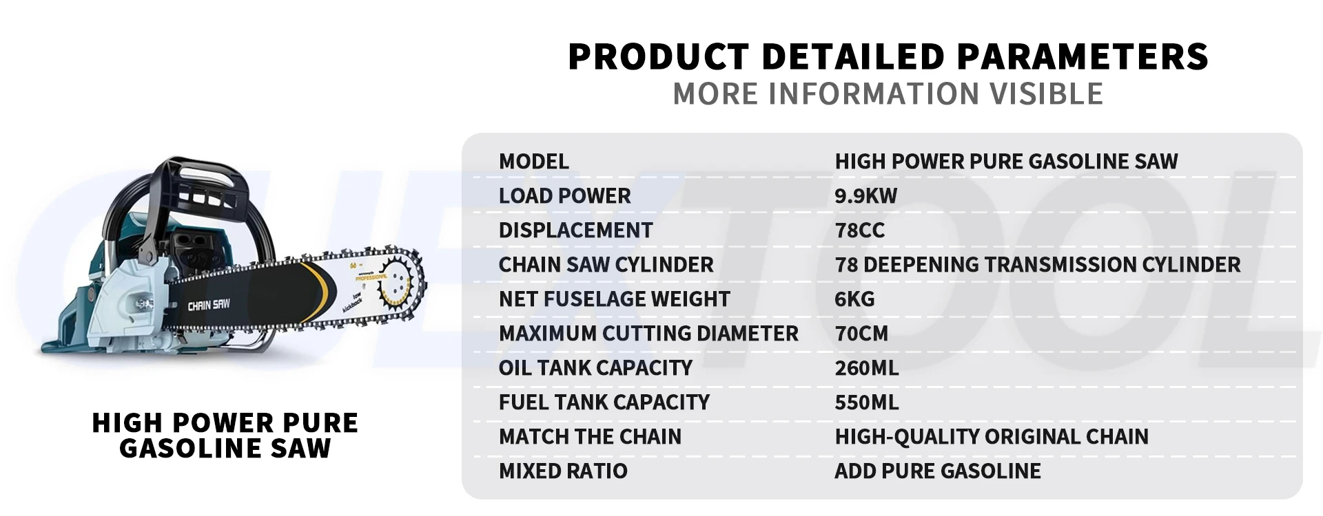 High-Power Chainsaw 9900W Logging Saw 87CC 4-Stroke Gasoline Chain Saw