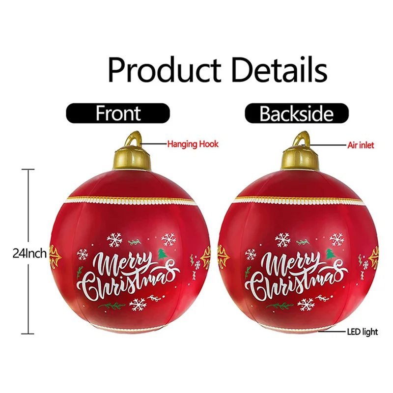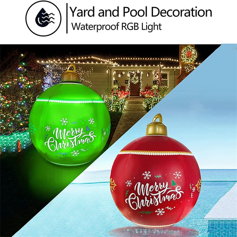 2023 60CM Outdoor Christmas Inflatable Decorated Ball Made PVC Giant Light Glow Large Balls Tree Decorations Outdoor Toy Ball