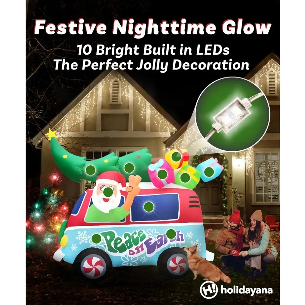 - GIGANTIC CHRISTMAS DECORATION – At 8ft Tall, the Santa Hippie Van Yard Inflatable is a head-turner! Use it by itself or with other Christmas ornaments to create a winter wonderland. This gigantic decor will be a head-turner in your neighborhood.
