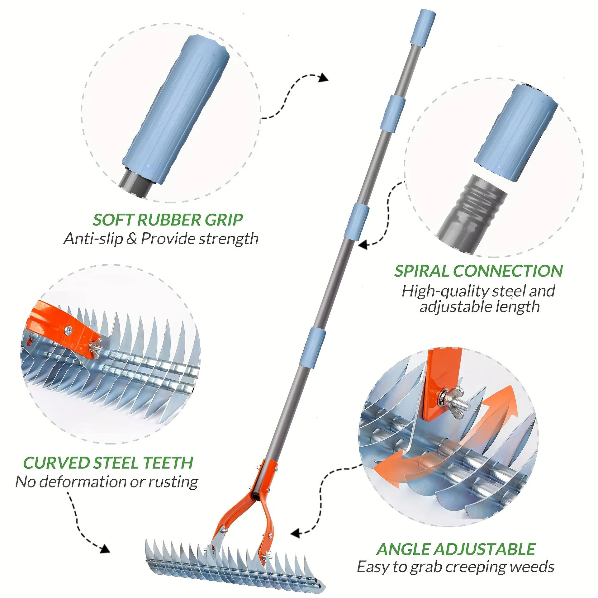 【Portable】Lawn Hay Rake, compact design, adjustable length, can be easily hung or placed in a storage cabinet when not in use.