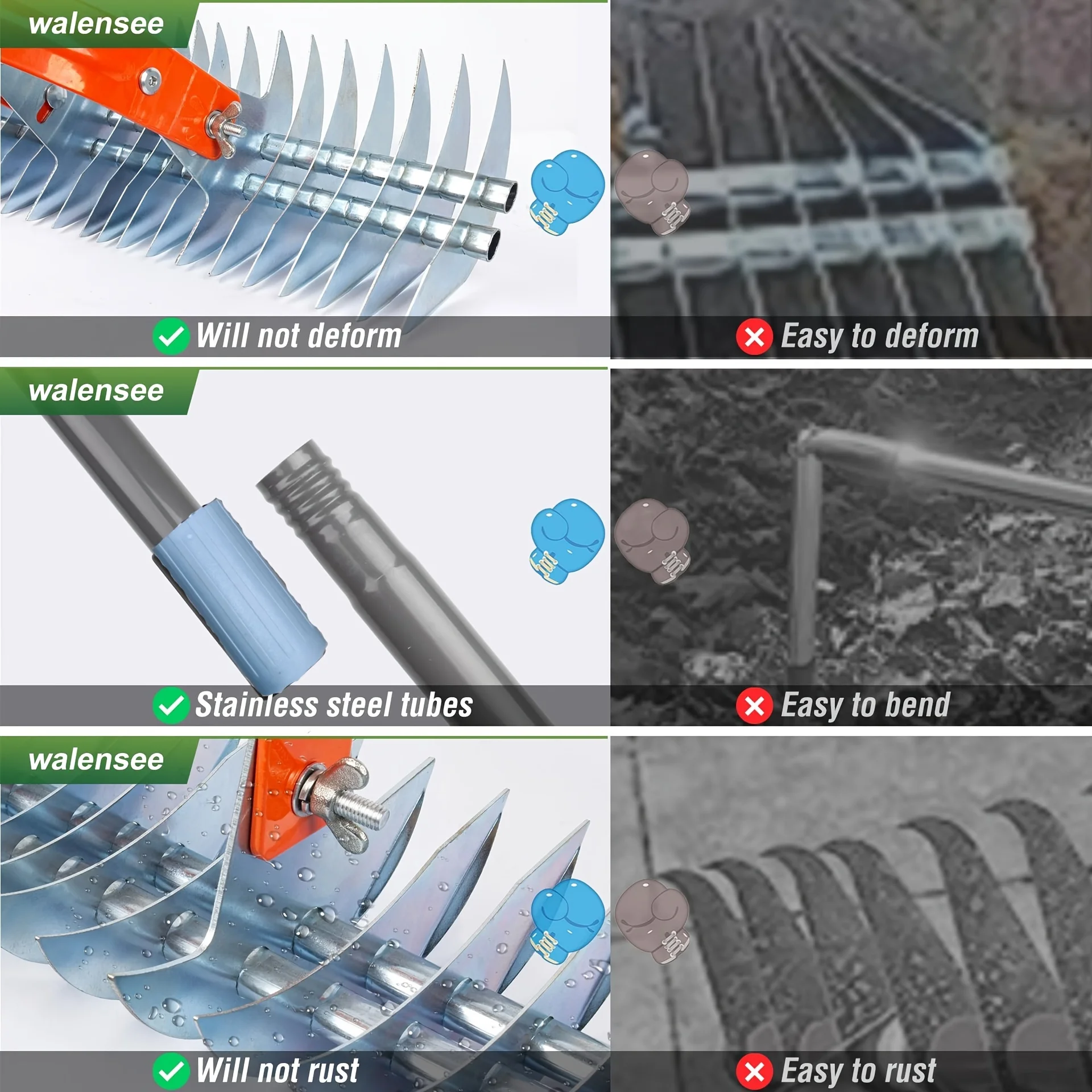 【Multifunctional】Lawn Thatching Rake can not only be used to clean grass and fallen leaves on the lawn but can also be used as a scarifier.