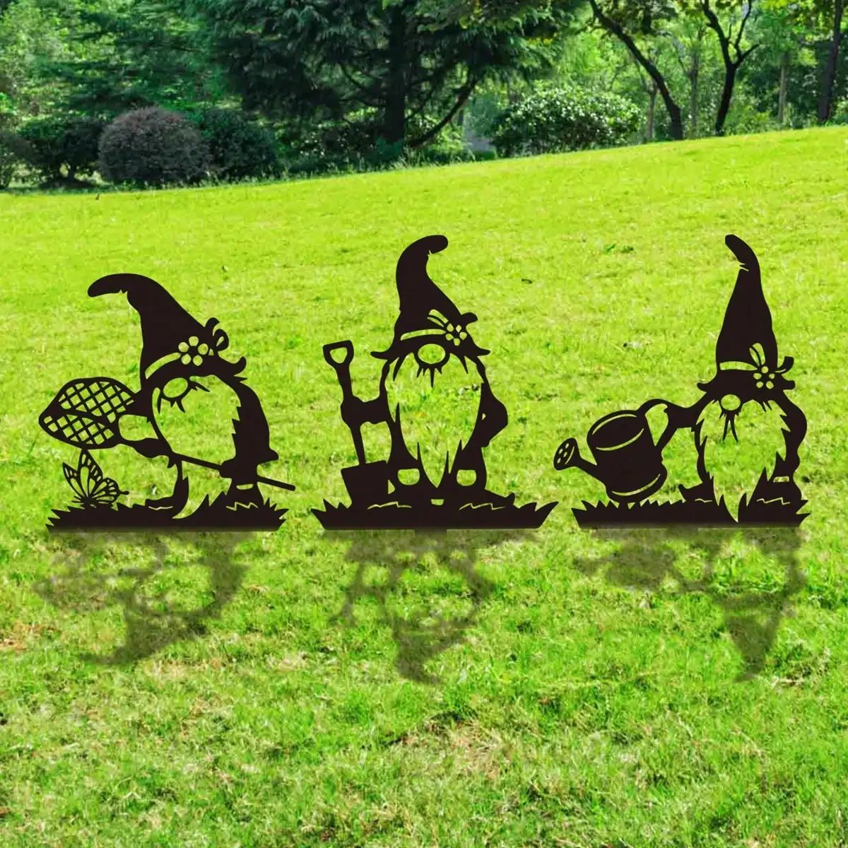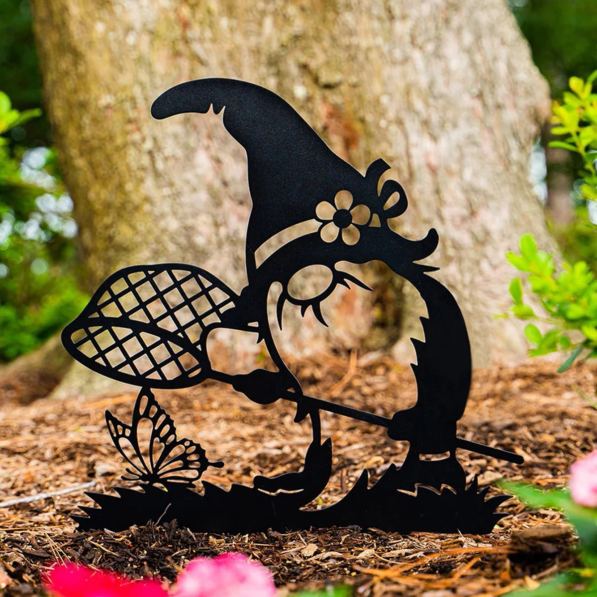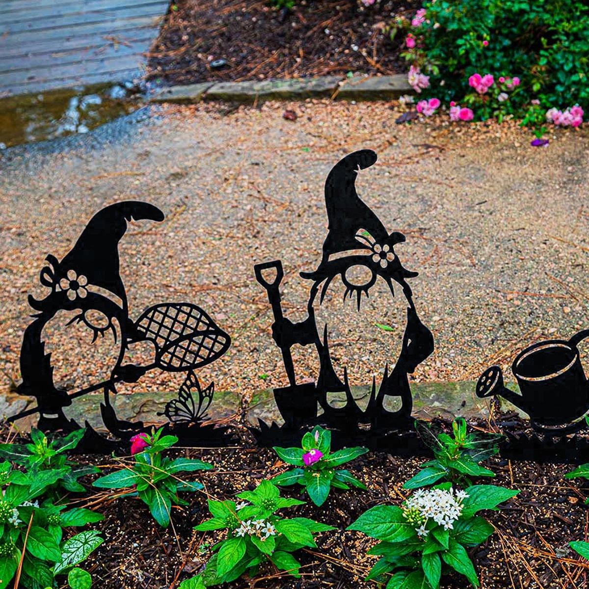 Metal Black gnome Garden Stakes Decoration