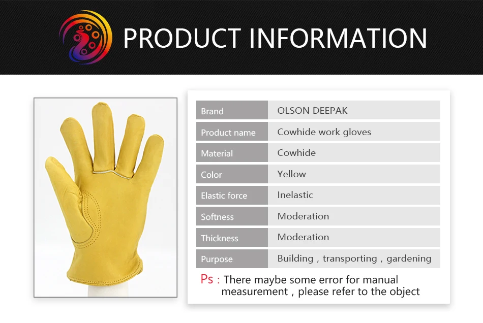 Be the first to review “OLSON DEEPAK Leather Work Gloves Work Drivers Gloves Gardening Motorcycle Household Work Cowhide Leather Safety Working Gloves”