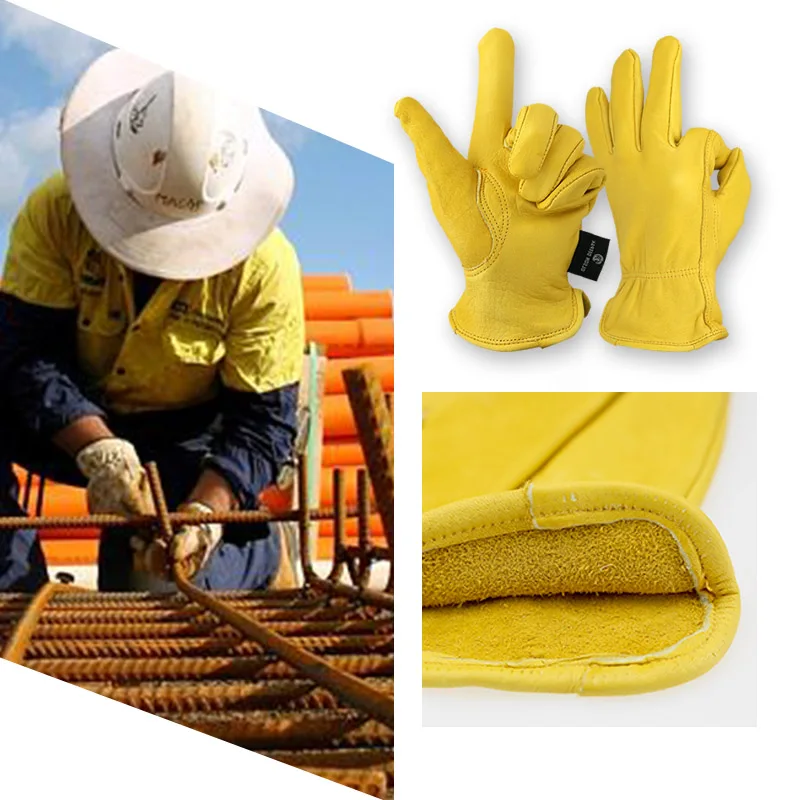OLSON DEEPAK Leather Work Gloves Work Drivers Gloves Gardening Motorcycle Household Work Cowhide Leather Safety Working Gloves