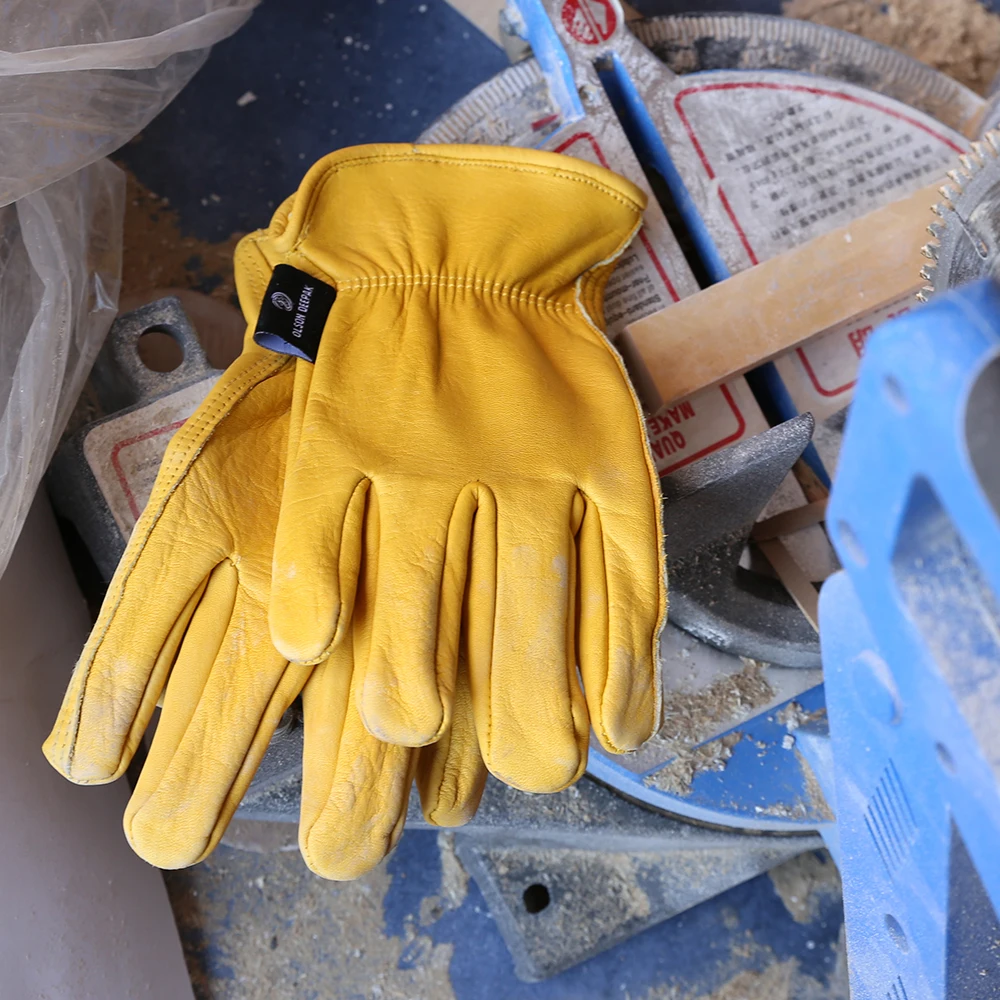 OLSON DEEPAK Cow Leather Gardening Work Gloves General Construction Drivers Motorcycle Glove HY008
