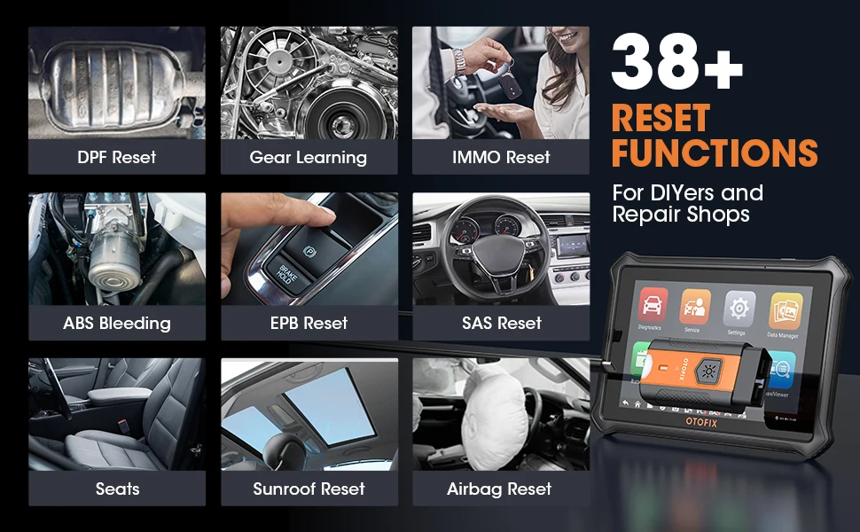 3. 38+ reset functions fix 99% of common vehicle problems with one scanner;