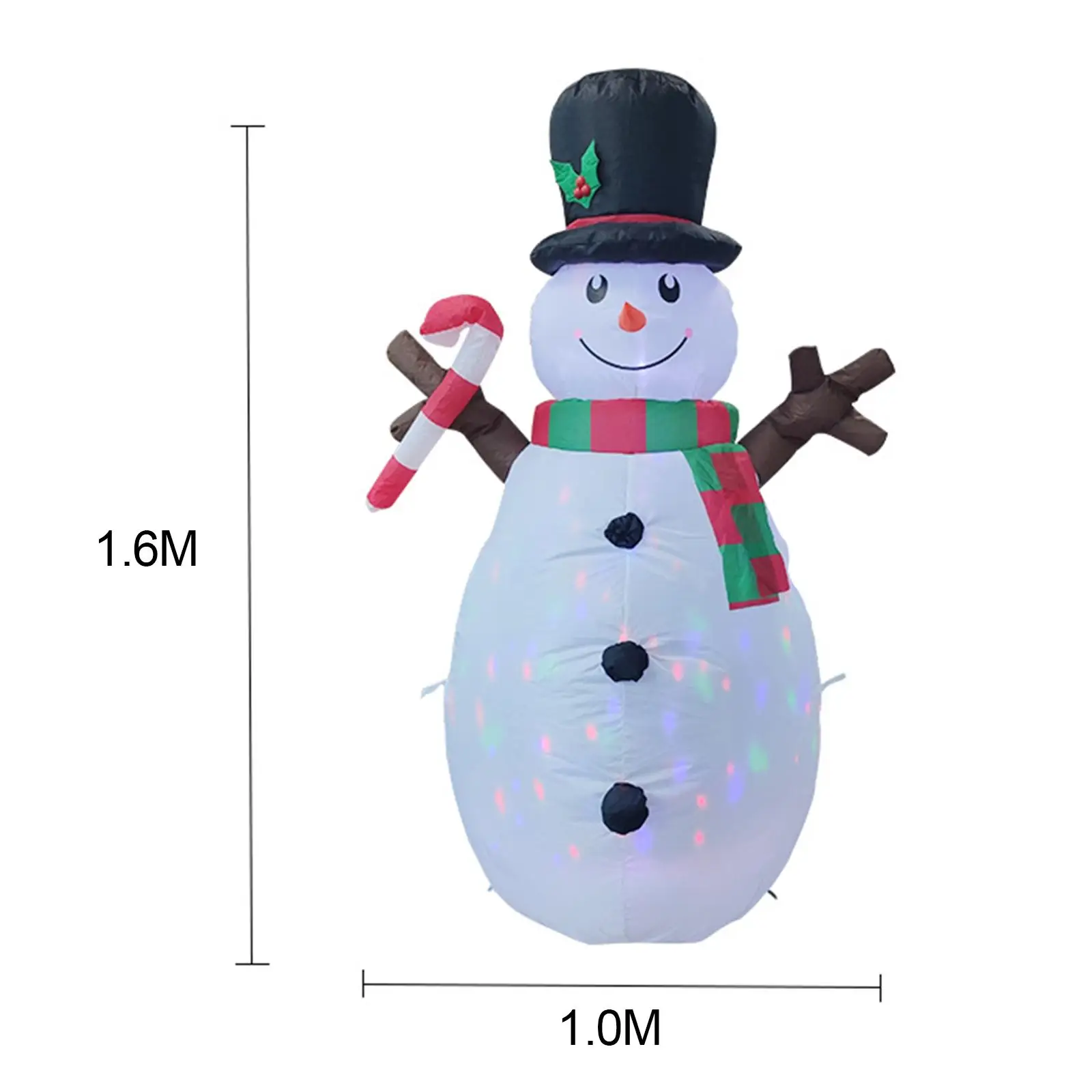 【5.2FT TALL】: 5.2ft inflatable snowman is easy to install and equipped with 4x ground plugs and 2x fixed drawstrings to fix the base well, so no additional support is needed.