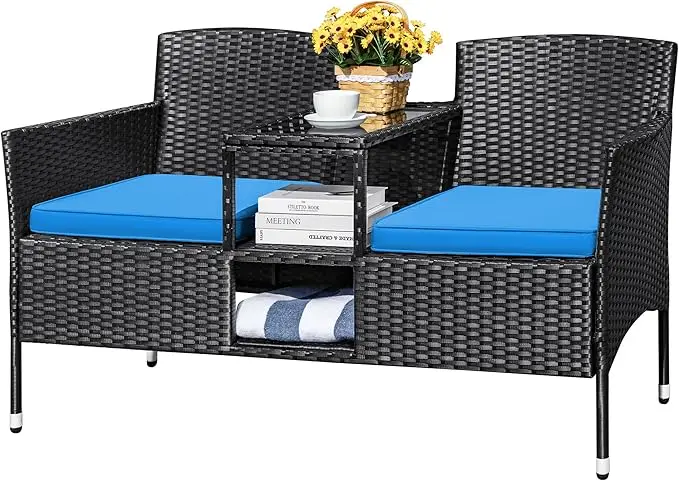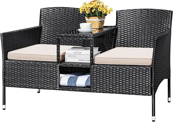 - Práctico y agradable: ya sea que estés tomando un descanso o unas vacaciones, este sofá biplaza está diseñado para que tú y tus amigos disfruten del tiempo libre libremente. Con la mesa integrada y el espacio de almacenamiento, una taza de café, una botella de vino, un plato de fruta o algunos de tus libros favoritos se pueden colocar a tu alcance, lo que añade más comodidad a tu tiempo de conversación o lectura.